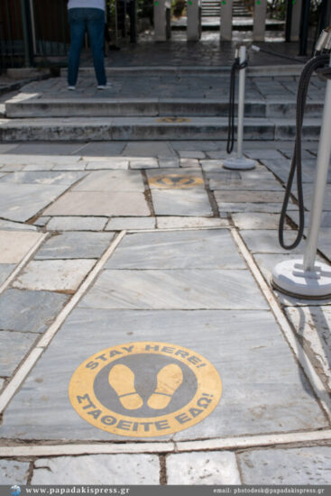 - Απόσταση 1,5 μέτρων κατ΄ ελάχιστον, τόσο μέσα στον αρχαιολογικό χώρο, όσο και στην αναμονή για την έκδοση εισιτηρίου.