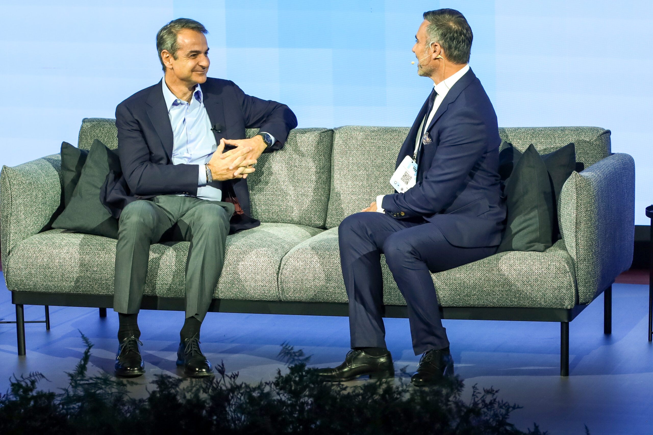 Ο Πρωθυπουργός Κυριάκος Μητσοτάκης και ο Γιώργος Καπουτζίδης στο συνέδριο Upfront Initiative στο Ωδείο Αθηνών