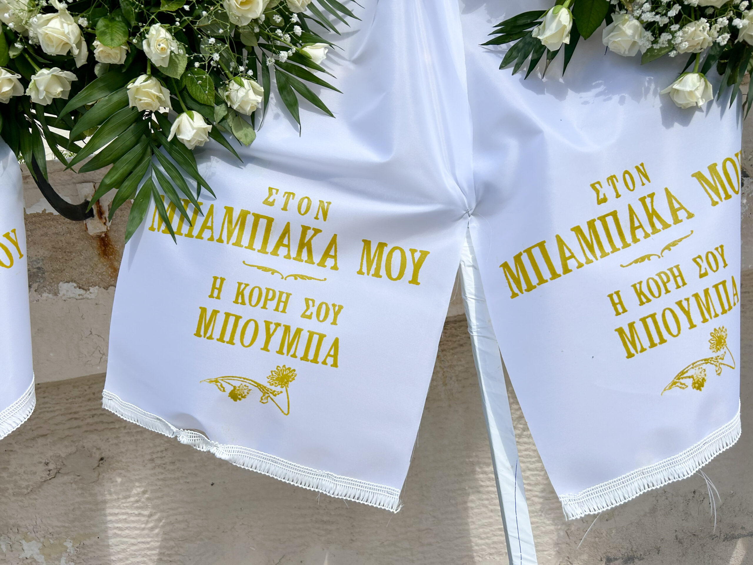 Συγκινημένη για την απώλεια του αγαπημένου της πατέρα, η γνωστή ηθοποιός θέλησε να τιμήσει τη μνήμη μου με ένα στεφάνι το οποίο έγραφε: «Στον μπαμπάκα μου. Η κόρη σου, Μπούμπα», όπως συνήθιζε να την αποκαλεί χαϊδευτικά. Στο πλευρό της Σμαράγδας Καρύδη, βρίσκεται συνεχώς ο σύντροφός της και ηθοποιός, Θοδωρής Αθερίδης.