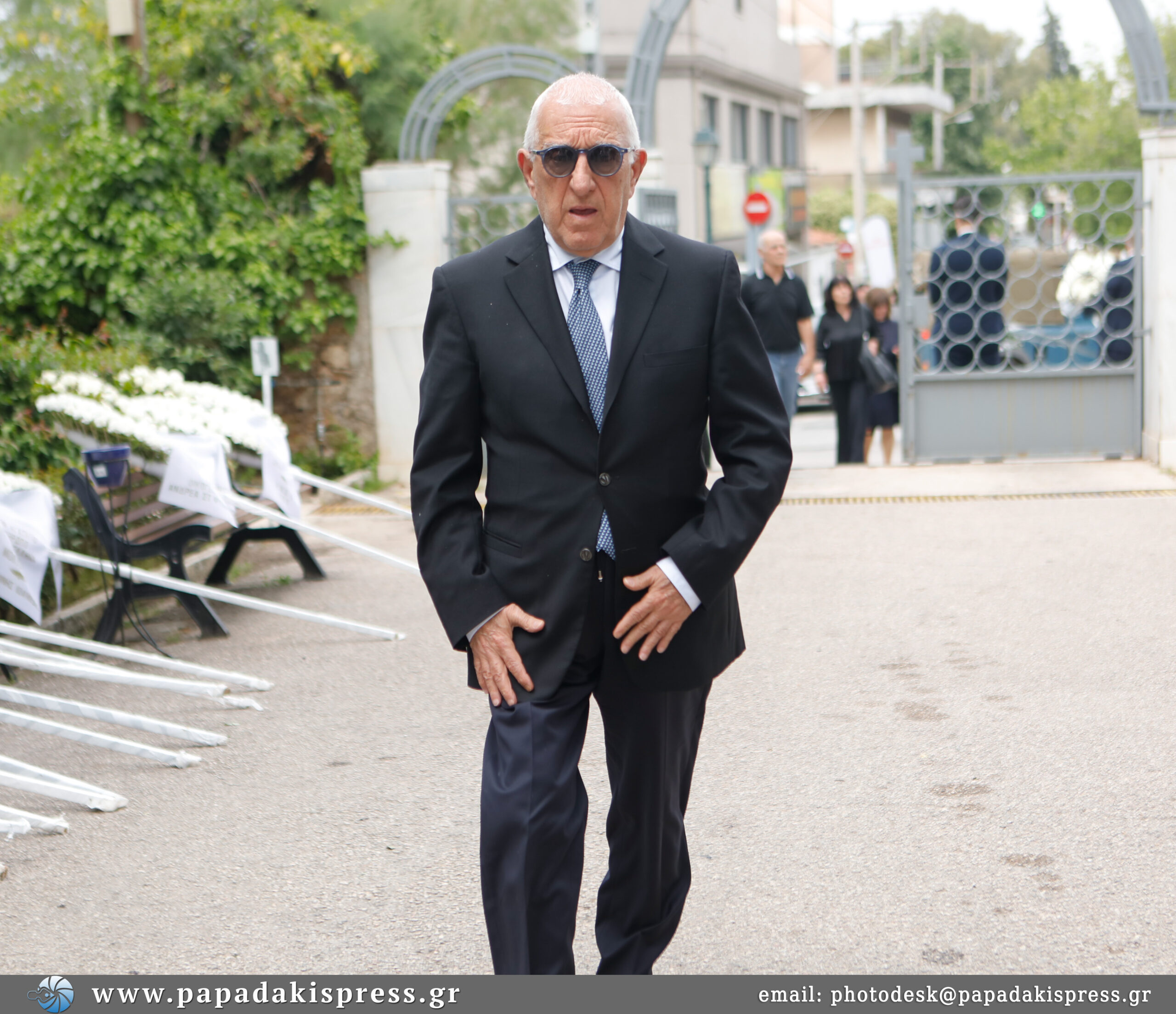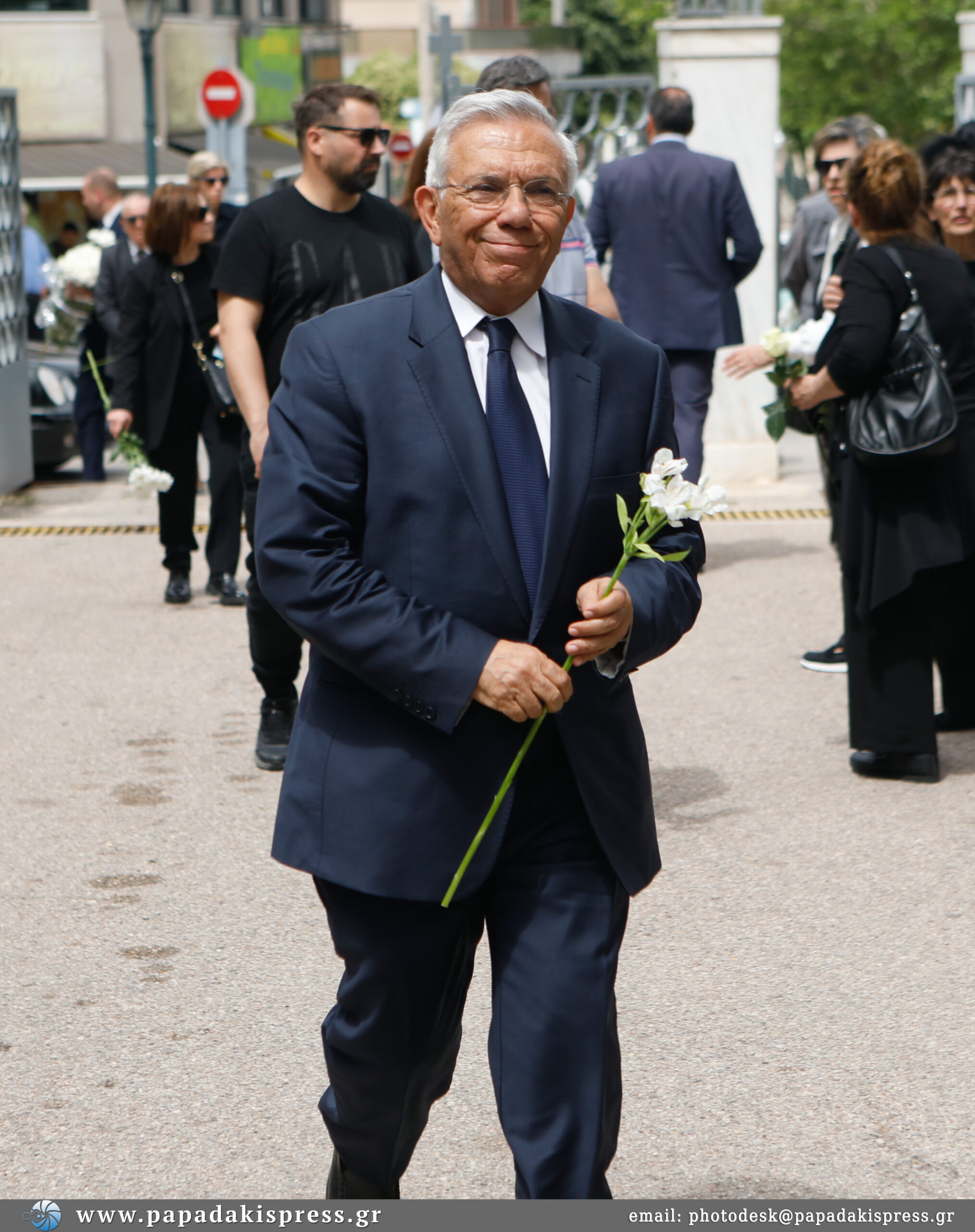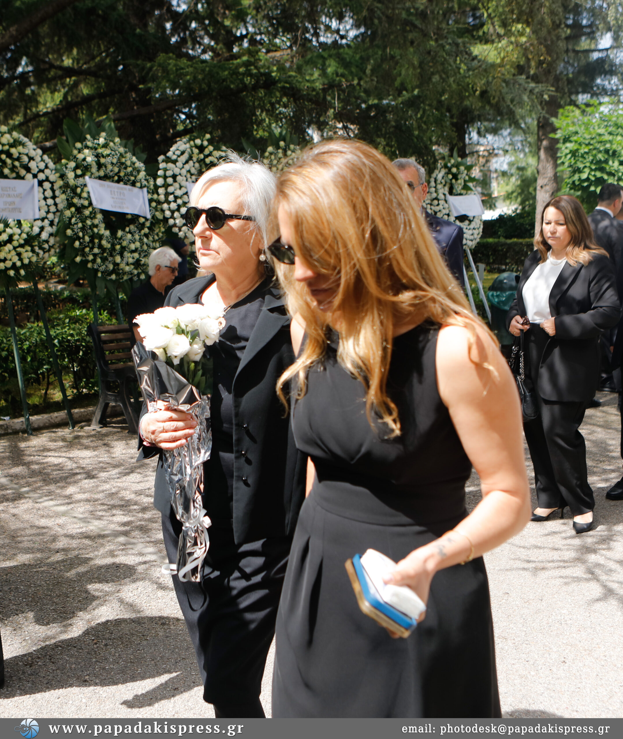 Η σορός έφτασε στο κοιμητήριο Κηφισιάς τυλιγμένη με την ελληνική σημαία ενώ εκεί βρίσκεται και η κόρη του, Λώρα.