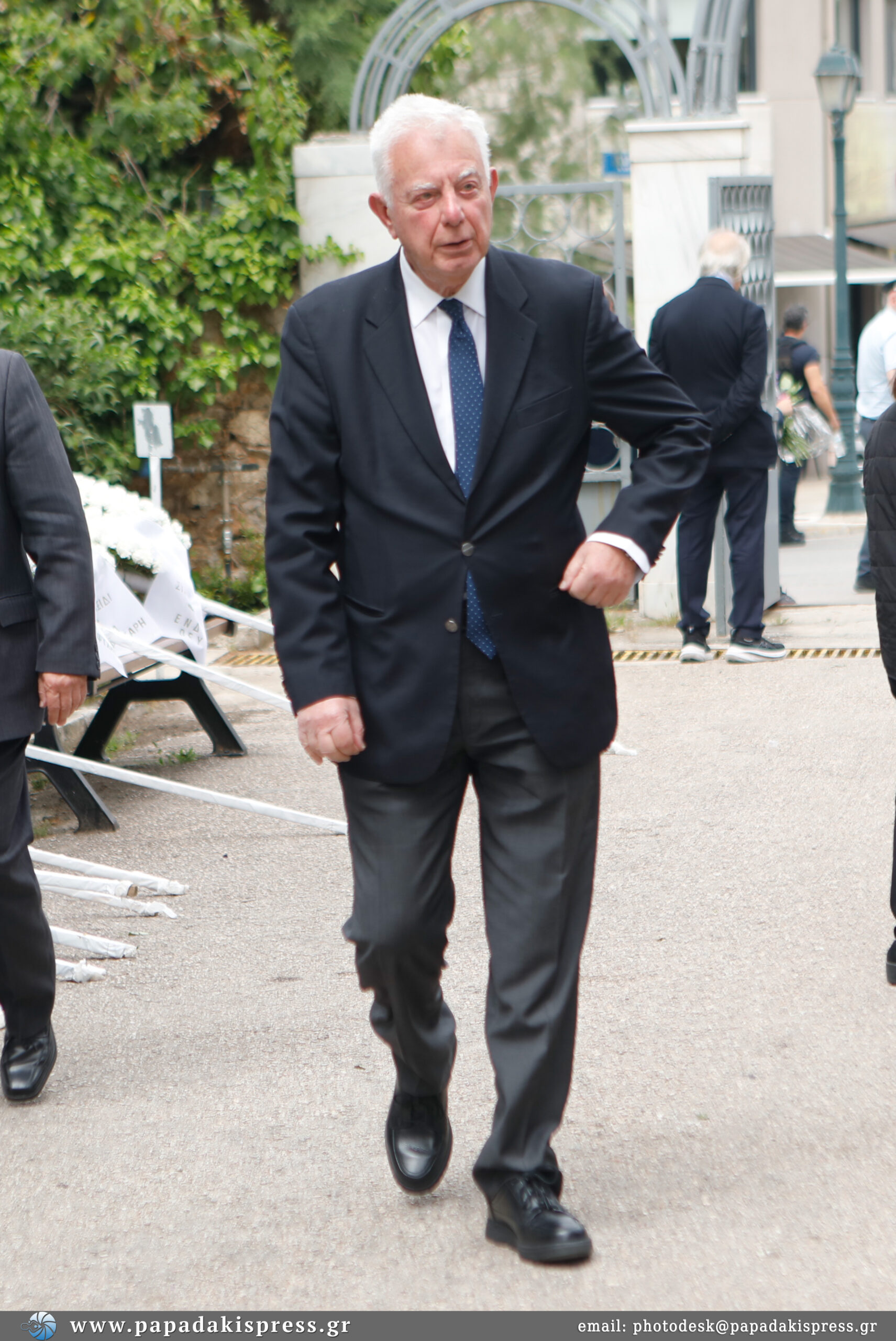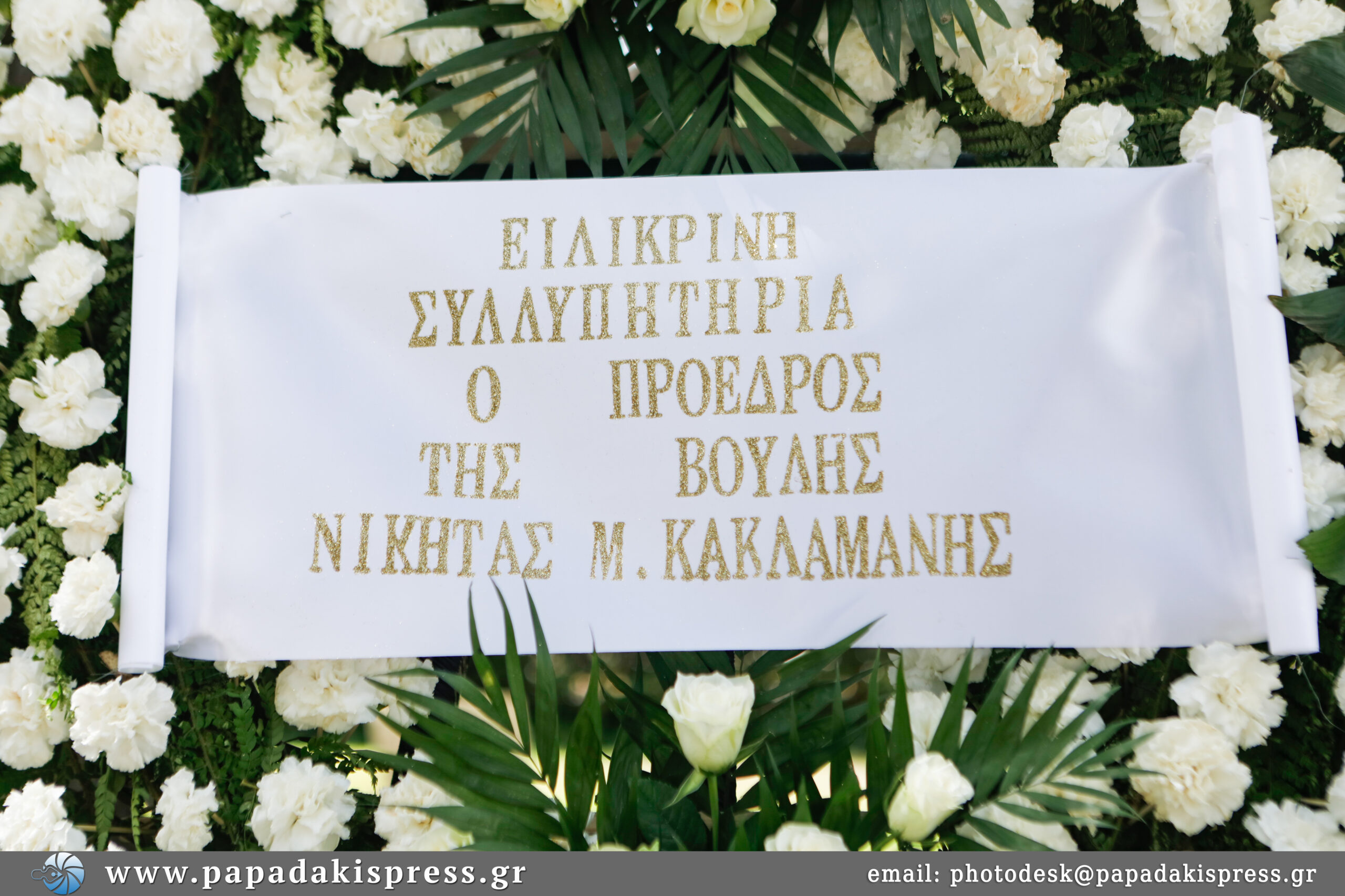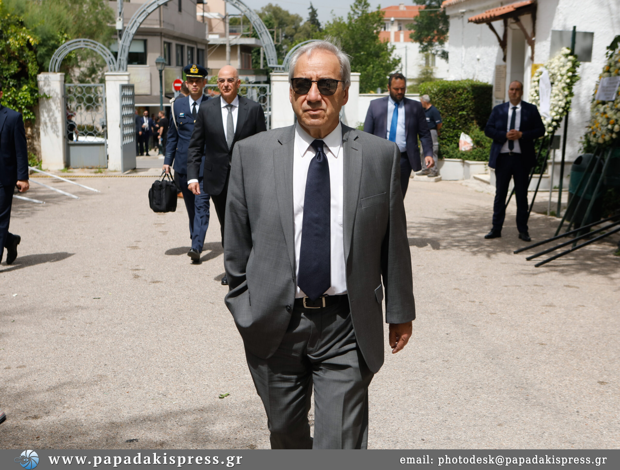 Η σορός έφτασε στο κοιμητήριο Κηφισιάς τυλιγμένη με την ελληνική σημαία ενώ εκεί βρίσκεται και η κόρη του, Λώρα.