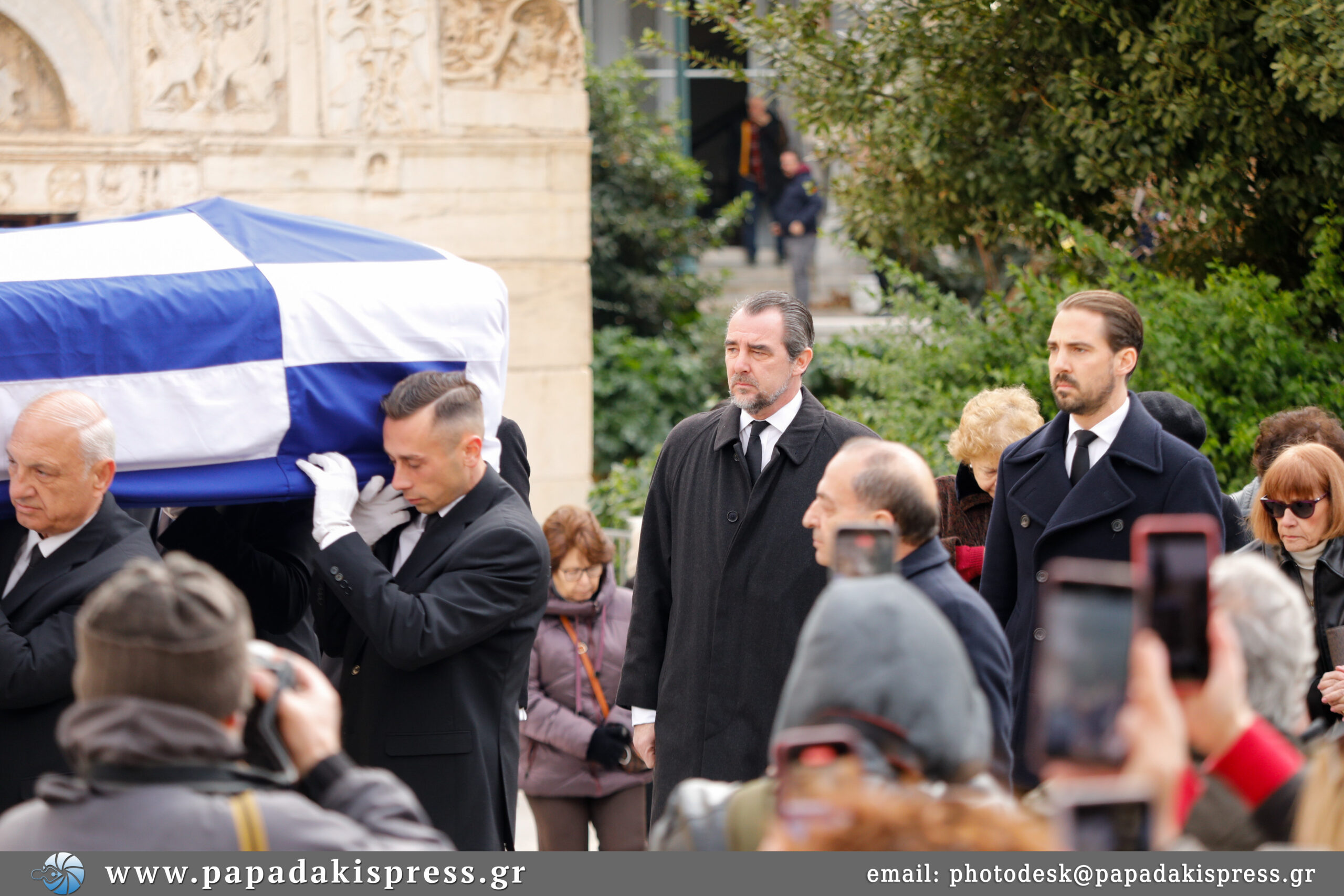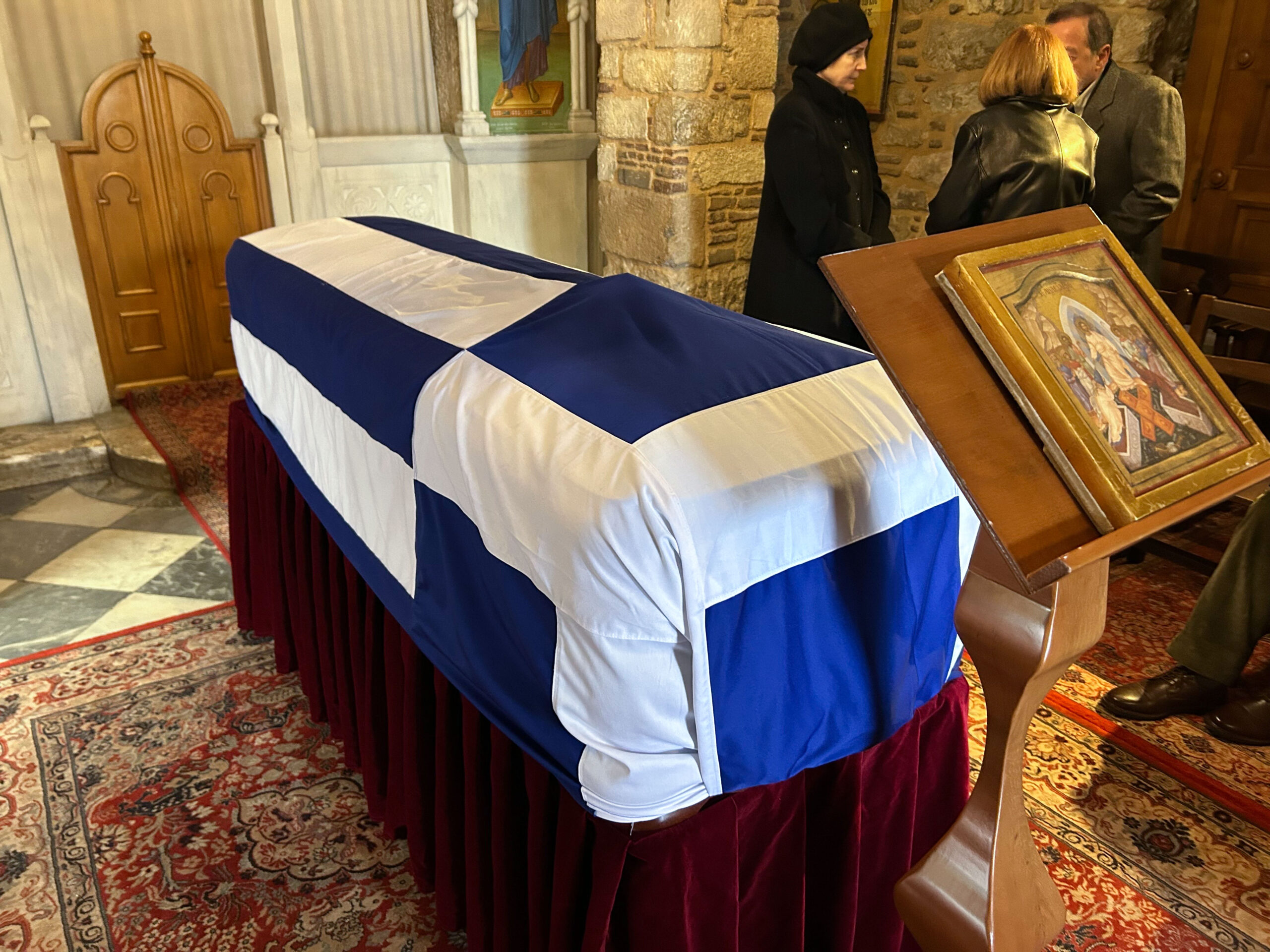 Το φέρετρο με τη σορό της αδελφής του τέως βασιλιά Κωνσταντίνου, καλυμμένο με την ελληνική σημαία, βρίσκεται από τις 8 το πρωί στο παρεκκλήσι της Μητρόπολης Αθηνών, όπου θα παραμείνει έως τις 10.30 και την ολοκλήρωση του λαϊκού προσκυνήματος.