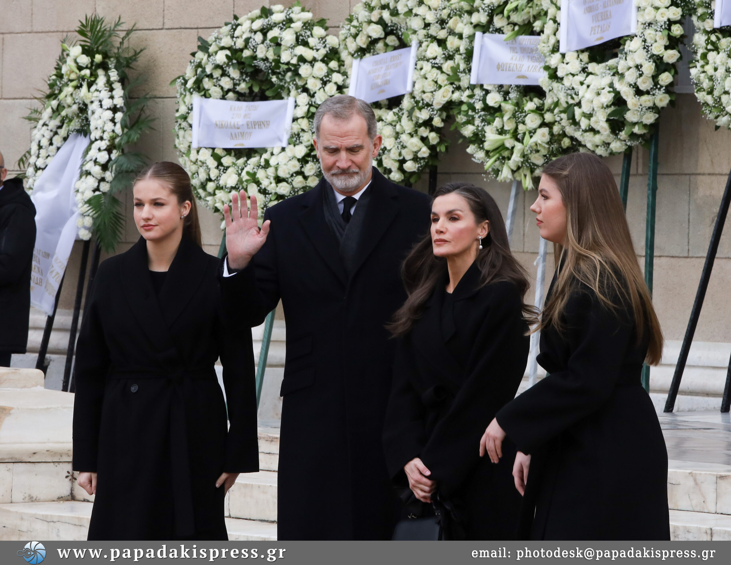 Η σορός μεταφέρθηκε στην Ελληνορθόδοξη Μητρόπολη Αγίου Ανδρέα και Αγίου Δημητρίου, ενώ παρόντες ήταν ο Φελίπε ΣΤ΄, η Λετίθια, καθώς και η πριγκίπισσα Λεονόρ με την Ινφάντα Σοφία.