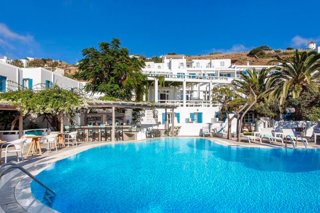 Είναι χτισμένο σύμφωνα με το Νεοκλασικό στυλ διακόσμησης και αποτελείται από 25 καλαίσθητα διακοσμημένα δωμάτια. Όλα διαθέτουν μπαλκόνι με θέα προς το λιμάνι της Μυκόνου και το Αιγαίο Πέλαγος. Η διεύθυνση του ξενοδοχείου και το άριστα εκπαιδευμένο προσωπικό βρίσκονται πάντα στη διάθεσή σας εξασφαλίζοντας μια ευχάριστη και αξέχαστη διαμονή όλο το χρόνο.