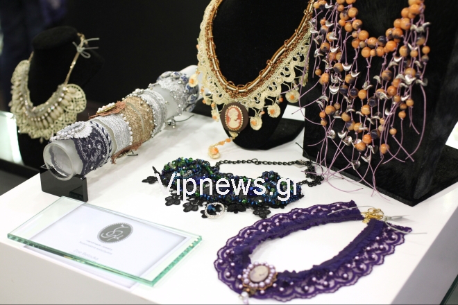 Ημιπολύτιμες πέτρες δένονται με κομμάτια παλαιών κοσμημάτων από την Ινδία, την Τουρκία, το Αφγανιστάν και κορδόνια και γίνονται περίτεχνα κολιέ με μοντέρνα αισθητική άποψη.