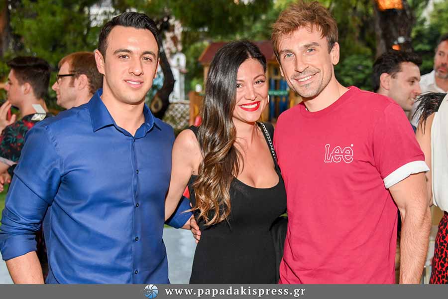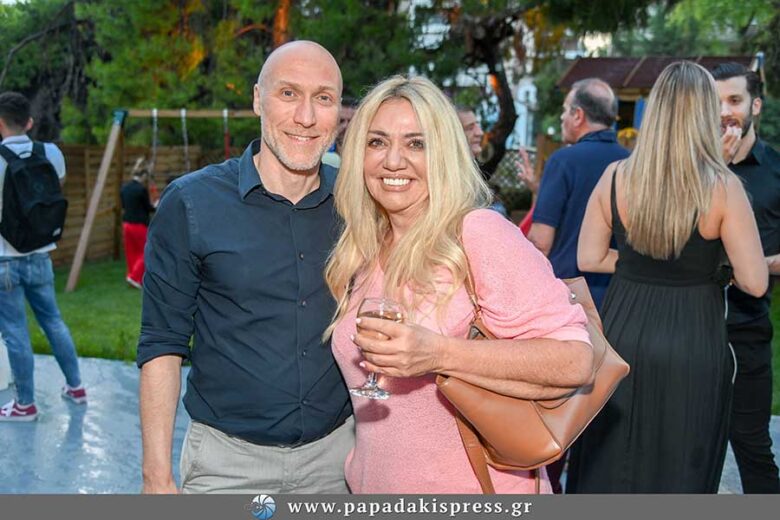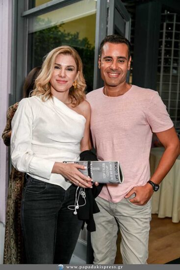 Από το πλευρό του δε θα μπορούσε φυσικά να λείπει η Κατερίνα Καραβάτου, η οποία ήταν συνεχώς δίπλα του, ευτυχισμένη και χαρούμενη, στηρίζοντας το σύζυγό της στη νέα του αυτή, επαγγελματική κίνηση. Μεταξύ των επωνύμων που βρέθηκαν στα εγκαίνια ήταν και οι: Χρήστος Σπανός, Παναγιώτα Βλαντή, Μπέσυ Μάλφα, Μάκης Δελαπόρτας, Νίνα Λοτσάρη, Ελένη Τσαγκά, Σοφία Παυλίδου κ.α.