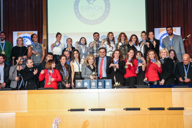 Στην ίδια εκδήλωση απονεμήθηκε επίσης το χρυσό μετάλλιο της ΕΘΝ.Ο.Α. στους 60 Έλληνες Ολυμπιονίκες που έλαβαν μέρος στα πανελλήνια προγράμματα «Ολυμπιακής Παιδείας» της Εθνικής Ολυμπιακής Ακαδημίας.