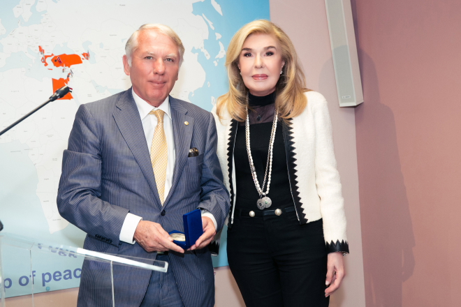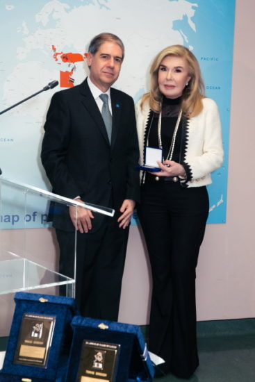 Σε αναγνώριση της μεγάλης συμβολής του Ιδρύματος «Αλέξανδρος Σ. Ωνάσης» στο έργο του Συλλόγου «ΕΛΠΙΔΑ», η κυρία Βαρδινογιάννη του απένειμε την Τιμητική Πλακέτα της «ΕΛΠΙΔΑΣ», καθώς και στον Πρόεδρο του Ιδρύματος κύριο Αντώνη Παπαδημητρίου, για την προσωπική του προσφορά.