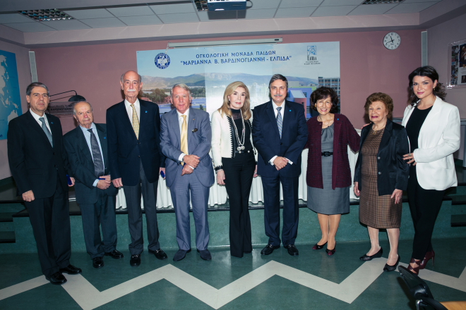 «Η σημερινή ημέρα είναι πολύ ξεχωριστή», είπε η κυρία Βαρδινογιάννη, υποδεχόμενη τον Πρόεδρο του Ιδρύματος «Αλέξανδρος Σ. Ωνάσης», κύριο Αντώνη Παπαδημητρίου, τον Επίτιμο Πρόεδρο του Ιδρύματος, κύριο Παύλο Ιωαννίδη, τον Αντιπρόεδρο, κύριο Ιωάννη Ιωαννίδη, τη Γενική Γραμματέα του Δ.Σ. του Ιδρύματος, κυρία Μαριάννα Μόσχου, και τα μέλη του Δ.Σ., τον Πρόεδρο της Ακαδημίας Αθηνών, καθηγητή Δημήτρη Νανόπουλο και κύριο Παρασκευά Ιωαννίδη, στην Ογκολογική Μονάδα Παίδων «Μαριάννα Β. Βαρδινογιάννη – ΕΛΠΙΔΑ». «Τόσο για μένα προσωπικά, όσο και για ολόκληρη την οικογένεια της «ΕΛΠΙΔΑΣ», την οποία στηρίζετε εδώ και πολλά χρόνια με βαθειά ευαισθησία και απέραντη αγάπη για τα παιδιά. Και είναι ξεχωριστή, γιατί στο πρόσωπό σας υποδεχόμαστε και τιμάμε σήμερα, ένα από τα σπουδαιότερα ιδρύματα στην Ελλάδα και στο εξωτερικό, το Κοινωφελές Ίδρυμα «Αλέξανδρος Σ. Ωνάσης» που προσφέρει στη χώρα μας έργο εθνικής σημασίας και αποτελεί έναν από τους βασικούς ευεργέτες του Συλλόγου Φίλων Παιδιών με καρκίνο «ΕΛΠΙΔΑ». Αισθάνομαι μεγάλη συγκίνηση που βρισκόμαστε σήμερα εδώ, ανάμεσα στα μέλη του Διοικητικού Συμβουλίου του Ιδρύματος «Αλέξανδρος Σ. Ωνάση» και σε αγαπημένους φίλους, καθώς και τα μέλη του Συλλόγου μας που θέλησαν να μοιραστούν μαζί μας αυτές τις συμβολικές και όμορφες στιγμές. Και η συγκίνησή μου είναι μεγαλύτερη στη σκέψη ότι η δημιουργία του Πρώτου Ογκολογικού Νοσοκομείου στην Ελλάδα απετέλεσε όραμα που μοιραστήκαμε και κατόρθωμα που στηρίχτηκε κατά ένα μεγάλο ποσοστό στη δική σας γενναιόδωρη συμβολή. Για εμάς, αυτή η προσφορά του Ιδρύματος Ωνάση απετέλεσε μια ιστορική συνεργασία, που θεμελίωσε την αμοιβαία εκτίμηση και τη φιλία που συνδέει την «ΕΛΠΙΔΑ» με το Ίδρυμα… Το μακροχρόνιο έργο του Ιδρύματος «Αλέξανδρος Σ. Ωνάσης» μας κάνει ως Έλληνες υπερήφανους. Με βασικούς του άξονες τον πολιτισμό, την παιδεία, την υγεία, το περιβάλλον και την κοινωνική αλληλεγγύη, στηρίζει τη χώρα μας και τον Ελληνικό Πολιτισμό, όπως οραματίστηκε ο ιδρυτής του, ο αείμνηστος Αριστοτέλης Ωνάσης, ο χαρισματικός άνθρωπος, ο γνήσιος πατριώτης, που θέλησε να ενισχύσει τον τόπο του και την σπουδαία πολιτιστική κληρονομιά της Ελλάδος… Η ευαισθησία του Ιδρύματος Ωνάση, όπως εκφράστηκε από τον Ιδρυτή του και το έργο του, αλλά και τους ιστορικούς Προέδρους του, τη Χριστίνα Ωνάση και τον Στέλιο Παπαδημητρίου, ο οποίος έδωσε φτερά στο έργο του Ιδρύματος, συνεχίζεται σήμερα επάξια μέσα από την ηγεσία του Αντώνη Παπαδημητρίου».