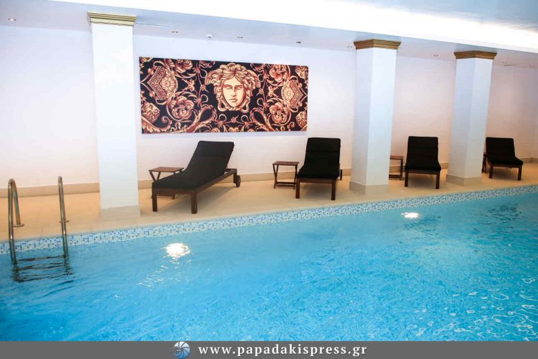 Η εσωτερική πισίνα είναι θερμαινόμενη και ανοιχτή όλο το χρόνο. Σε σε ένα χαλαρωτικό και άνετο περιβάλλον, εξειδικευμένο προσωπικό του ξενοδοχείου αναλαμβάνει να σας προσφέρει μια ποικιλία από χαλαρωτικά μασάζ και ευεργετικές θεραπείες που ανανεώνουν και ξυπνούν τις αισθήσεις σας. Απολαύστε μια υγιή συνεδρία σάουνας ή επιλέξτε από τις θεραπείες ημέρας προσώπου, σώματος και μασάζ που προσφέρονται στο Spa. Διαθέσιμη κατόπιν ζήτησης, αισθητικός του ξενοδοχείου θα σας προσφέρει μια ποικιλία από χαλαρωτικά μασάζ και ευεργετικές θεραπείες που ανανεώνουν και υποκινούν τις αισθήσεις σας. Το προσεχές διάστημα αναμένεται να ακολουθήσει εκδήλωση για τα επίσημα εγκαίνια του Theoxenia Palace Spa, στον χώρο του ξενοδοχείου.