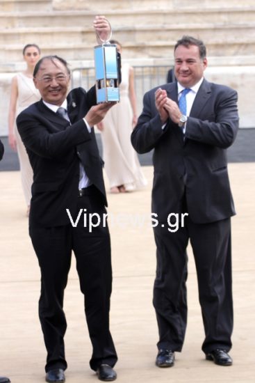 Στην τελετή Αφής και παράδοσης, η ιερή Φλόγα παρεδόθη στους Κινέζους διοργανωτές για τους Ολυμπιακούς Αγώνες Νέων «Νανζίνγκ 2014».