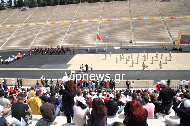 Με μια λιτή αλλά συγκινητική τελετή που έγινε στο Παναθηναϊκό Στάδιο, η Ελλάδα παρέδωσε την Ολυμπιακή φλόγα στους εκπροσώπους της κινεζικής πόλης Νανζίνγκ, με την Κατερίνα Λέχου να εντυπωσιάζει στην πρώτη της εμφάνιση ως Πρωθιέρεια.