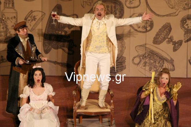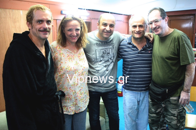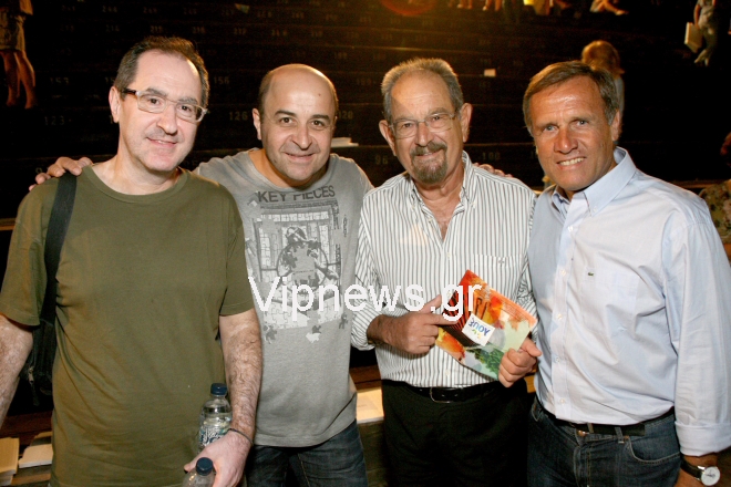 Ο γνωστός ηθοποιός απόλαυσε την επίκαιρη λόγω της οικονομικής κρίσης, παράσταση και στη συνέχεια πήγε στα καμαρίνια για να συγχαρεί προσωπικά τους συναδέλφους του για τις πειστικές τους ερμηνείες.