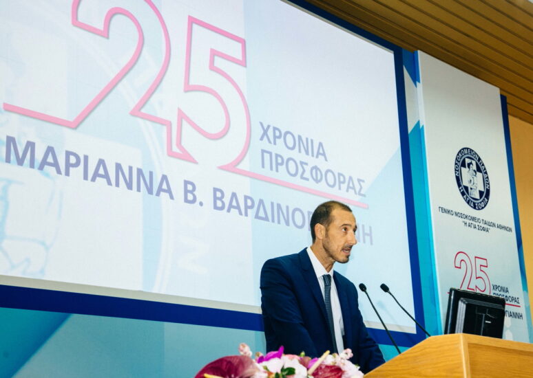 Κατά την ομιλία του, ο Διοικητής του Νοσοκομείου Παίδων μίλησε εκτενώς για το έργο και την προσφορά της κυρίας Βαρδινογιάννη: «Θέλω να ευχαριστήσω από τα βάθη της καρδιάς μου και εκ μέρους όλων των γονιών και των χιλιάδων παιδιών που αποθεραπεύτηκαν, αλλά και των παιδιών που δίνουν αυτή τη στιγμή τον δικό τους αγώνα, τον άνθρωπο, που χάρη σε αυτόν βρισκόμαστε εδώ και μιλάμε για αυτό το μεγαλειώδες έργο. Είμαι σίγουρος, ότι όλοι αυτοί οι χιλιάδες άνθρωποι εάν μπορούσαν να βρίσκονται εδώ, θα ήθελαν να πουν ένα μεγάλο ευχαριστώ στην κυρία Μαριάννα Βαρδινογιάννη, που με την ανεξάντλητη αγάπη της, τη προσφορά της, τη μαχητικότητά της, την αισιοδοξία της, κατάφερε το ακατόρθωτο, να μας δοθεί η δυνατότητα να παλέψουμε με τον καρκίνο της παιδικής ηλικίας, να έχουν όλα τα παιδιά έναν δυνατό σύμμαχο στον αγώνα τους και να καταφέρουν να βγούνε νικητές».