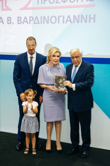 Στην εκδήλωση που διοργανώθηκε στο «Χωρέμειο Αμφιθέατρο» του Νοσοκομείου Παίδων «Η Αγία Σοφία», με αφορμή τα 25 χρόνια από τη δημιουργία της Μονάδας Μεταμόσχευσης Μυελού των Οστών το 1993, ο Πρόεδρος της Δημοκρατίας βράβευσε την κυρία Βαρδινογιάννη για τη συνολική της προσφορά στον χώρο της υγείας.
