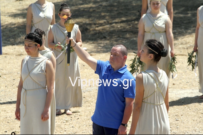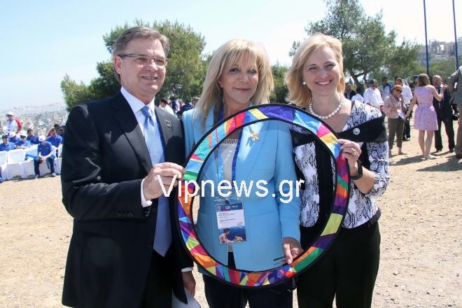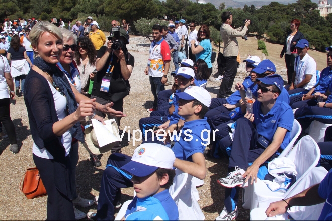 Τα φλας των φωτογράφων άστραψαν κατά την εμφάνιση της Νατάσσας Παζαΐτη στον Ιερό Βράχο της Πνύκας, όπου έγινε η Τελετή παράδοσης της φλόγας για τους 14ους Θερινούς Παγκόσμιους Αγώνες Special Olympics.