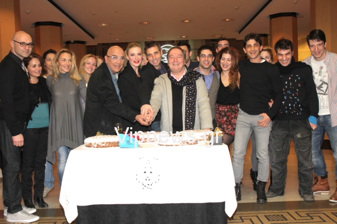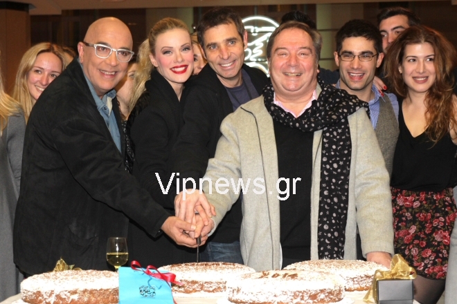 Ουσιαστικά, επειδή ο θίασος είναι μεγάλος, χρειάστηκαν τέσσερις πίτες τις οποίες έκοψαν ο Σταμάτης Φασουλής, η Ζέτα Μακρυπούλια, ο Θοδωρής Αθερίδης και ο Γιάννης Ζουγανέλης.