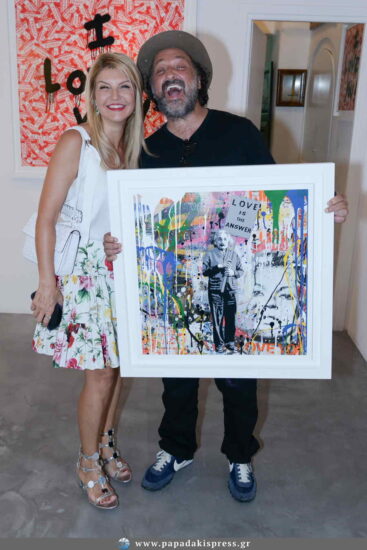 Ο δυναμικός καλλιτέχνης δήλωσε γοητευμένος από τη Μύκονο και από την έκθεση του στο κεντρικό Ματογιάννι στην αίθουσα της Kapopoulos Fine Arts, η οποία τον εκπροσωπεί αποκλειστικά στην Ελλάδα και Κύπρο.