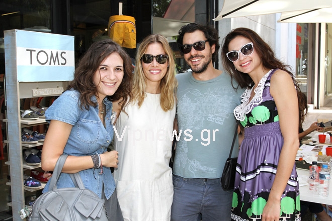 Στο αθηναϊκό Style Your Sole, τρεις Ελληνίδες καλλιτέχνιδες, η Ειρήνη Βεργίτση, η Κατερίνα Τραγά και η Λαλίν Πιερράκος ζωγράφισαν στο χέρι παπούτσια TOMS για όλους τους καλεσμένους που παρευρέθηκαν στο event .