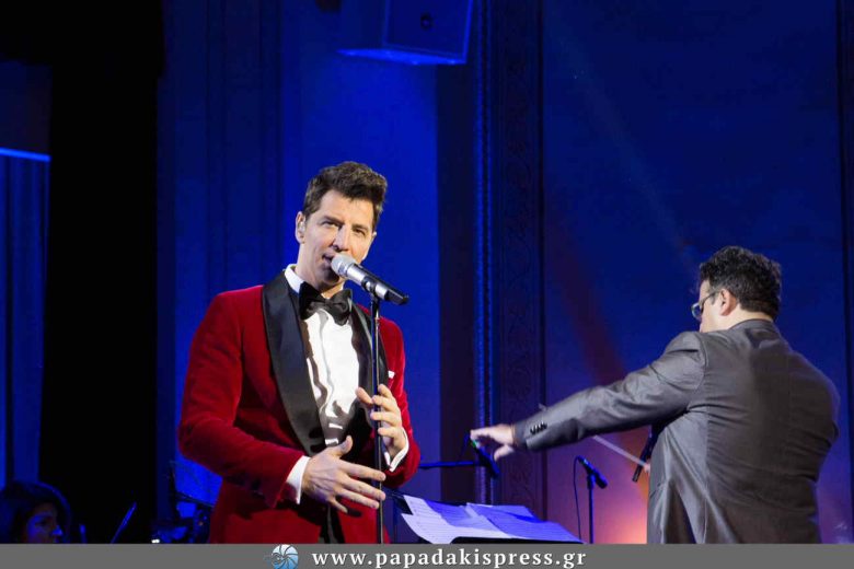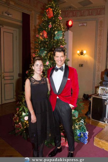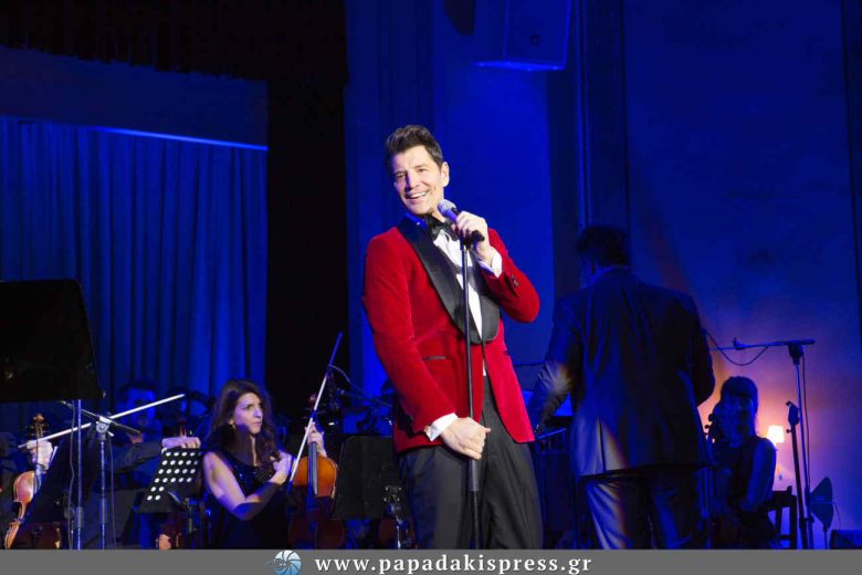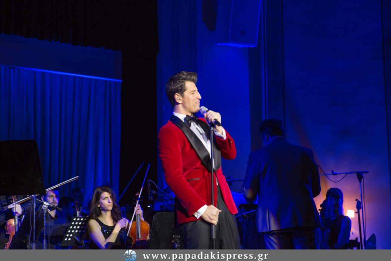 Ο γνωστός τραγουδιστής, ερμηνεύοντας μερικές από τις πιο γνωστές του επιτυχίες αλλά και χριστουγεννιάτικα τραγούδια, παρέσυρε το κοινό και εντυπωσίασε με την εμφάνισή του για την οποία επέλεξε ένα μαύρο παντελόνι, λουστρίνι μοκασίνι και ένα μπορντώ, βελούδινο σακάκι.