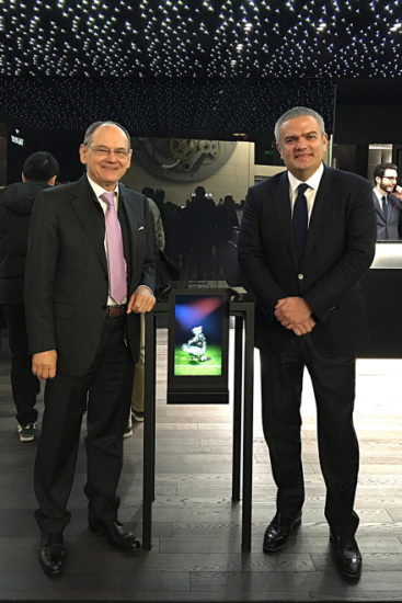 Χαμόγελα επιτυχίας και δημιουργικότητας από τον κοσμηματοπώλη Γιάννη Γκόφα και τον Διευθύνοντα Σύμβουλο της κορυφαίας ελβετικής εταιρείας κατασκευής ρολογιών Hublot, Ricardo Guadalupe, λίγα λεπτά μετά την συνάντησή τους που εξασφάλισε στον γνωστό Έλληνα κοσμηματοπώλη την δημιουργία του 5ου συλλεκτικού μοντέλου Ηublot Mykonos σε αποκλειστική διάθεση διεθνώς από το κατάστημα GOFAS στην κοσμοπολίτικη Μύκονο.