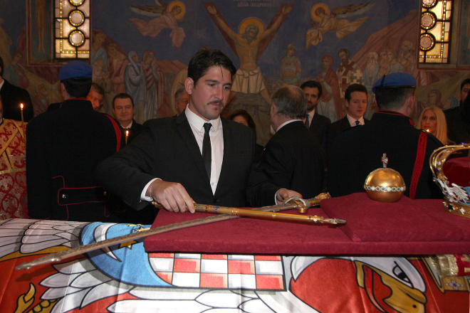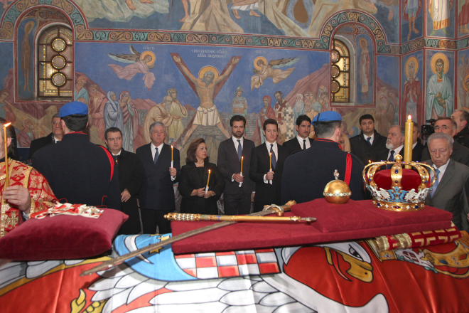 Παρόντες στην τελετή επιστροφής των οστών του πατέρα, παππού και πεθερού, Βασιλιά Πέτρου Β’ της Γιουγκοσλαβίας Ο Πρίγκιπας Αλέξανδρος, και η Πριγκίπισσα Αικατερίνη, οι Πρίγκιπες Πέτρος, Φίλιππος και Αλέξανδρος και η κόρη της Αικατερίνης, Alison.