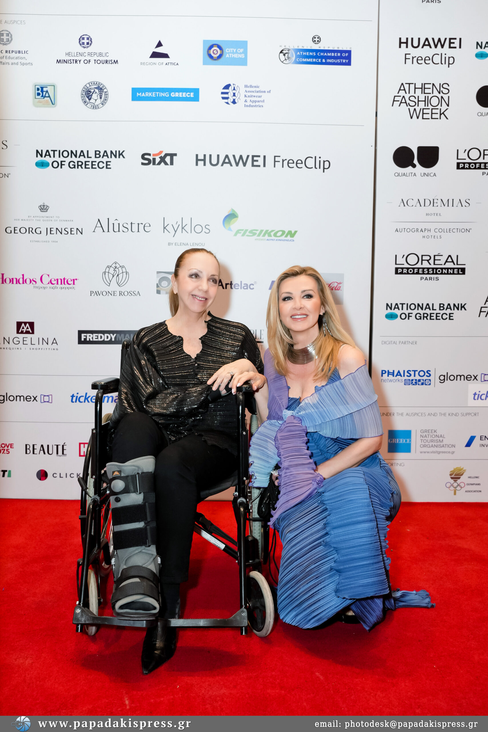 Η σχεδιάστρια παρόλο που έχει σπασμένο καρπό και αστράγαλο και κινείται με αναπηρική καρέκλα, ήταν παρούσα και δέχτηκε τα συγχαρητήρια των πελατών και φίλων που παρευρέθηκαν.