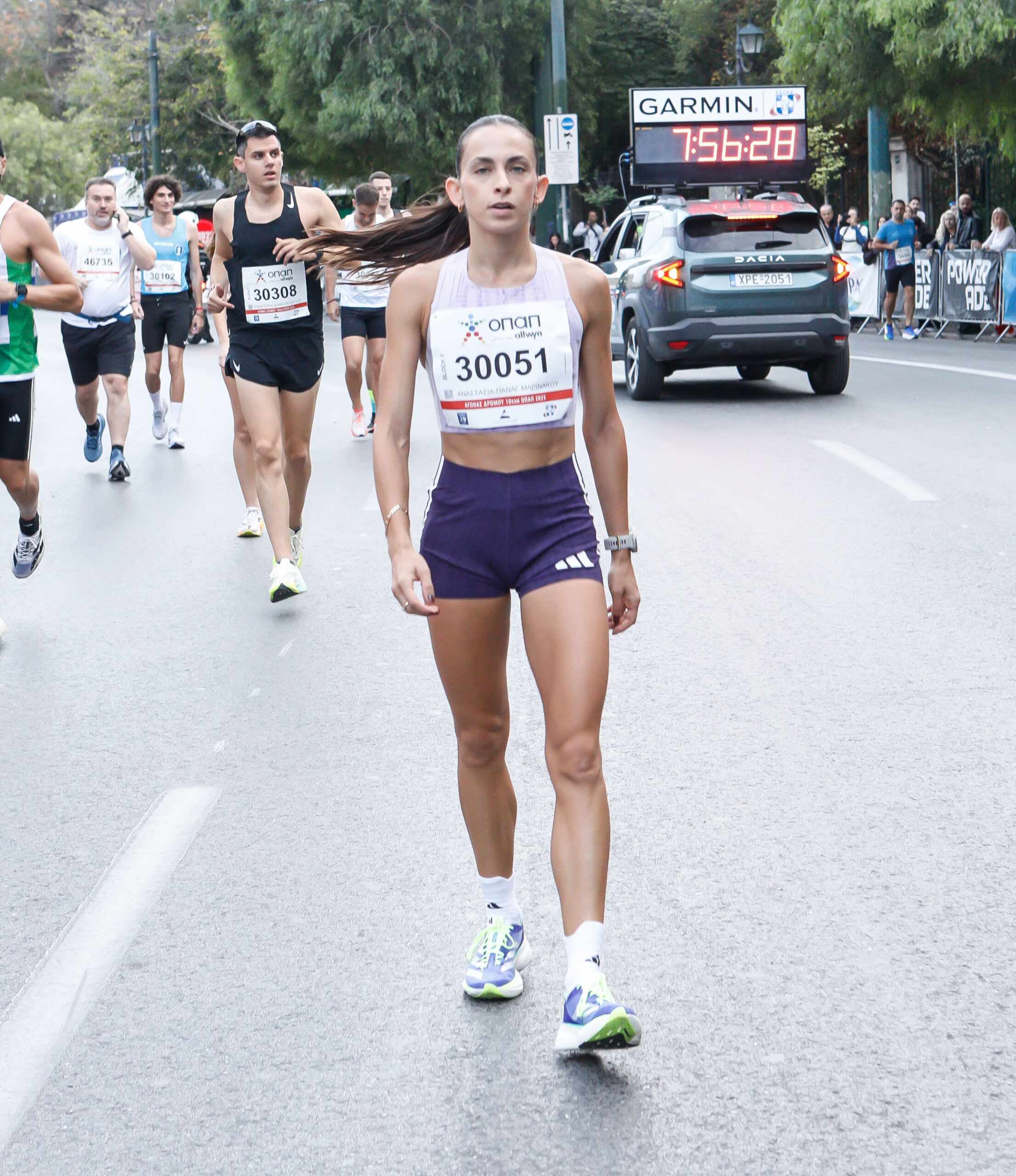 Η Σταματίνα Νούλα, και αυτή αθλήτρια του Ν.Γ.Σ. Ηρακλής, ήταν η δρομέας που πέρασε πρώτη τη γραμμή του τερματισμού.