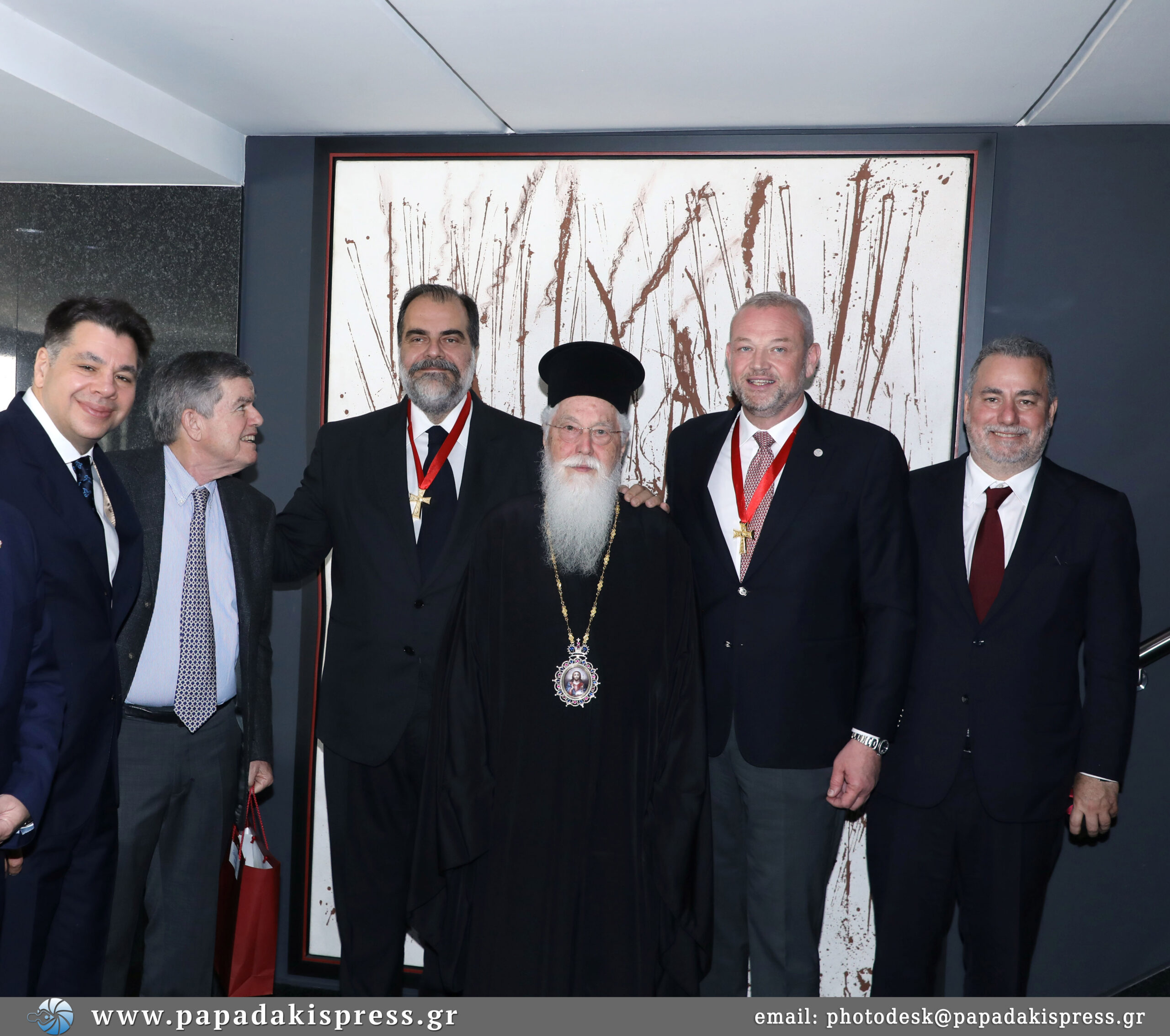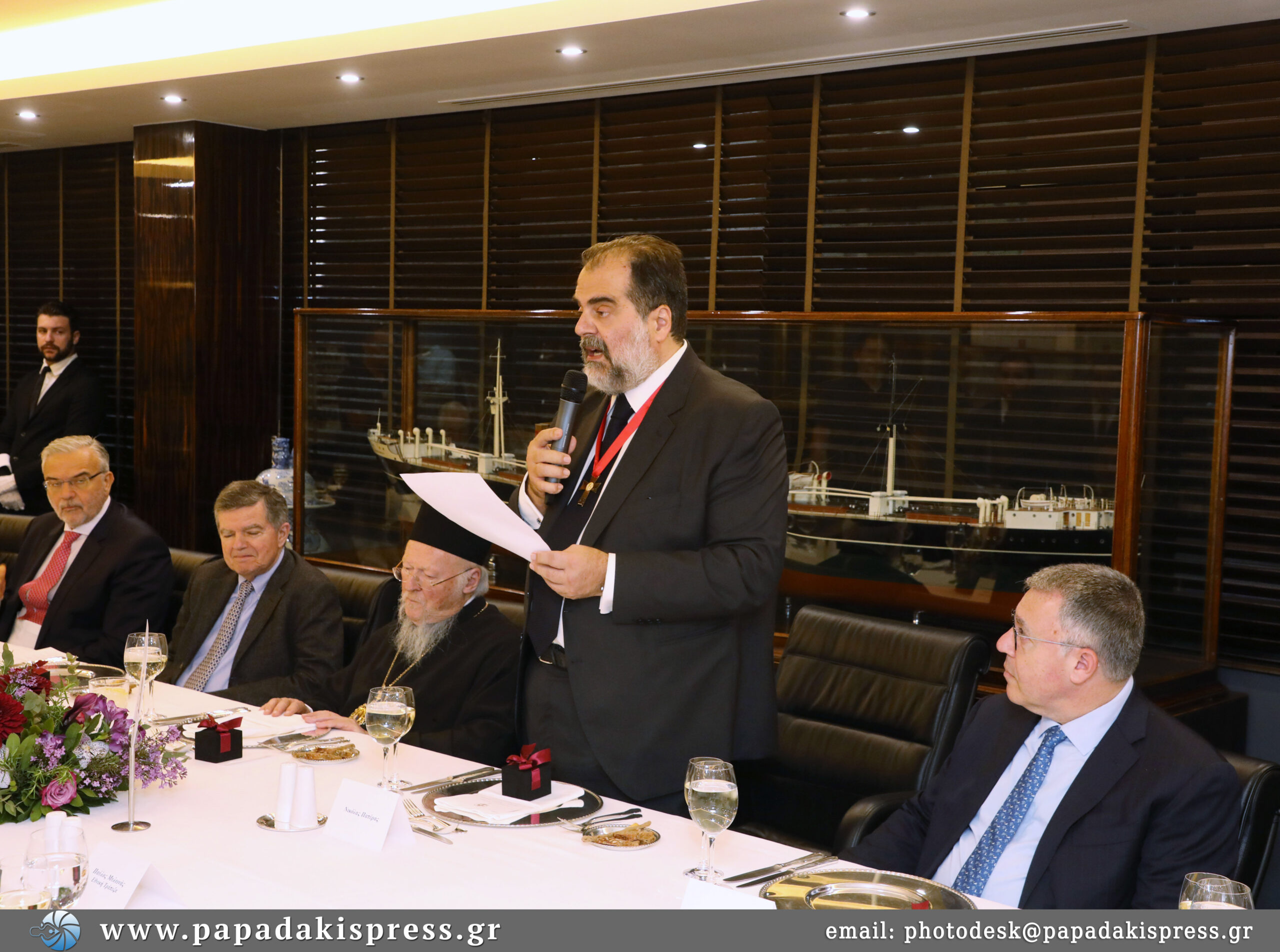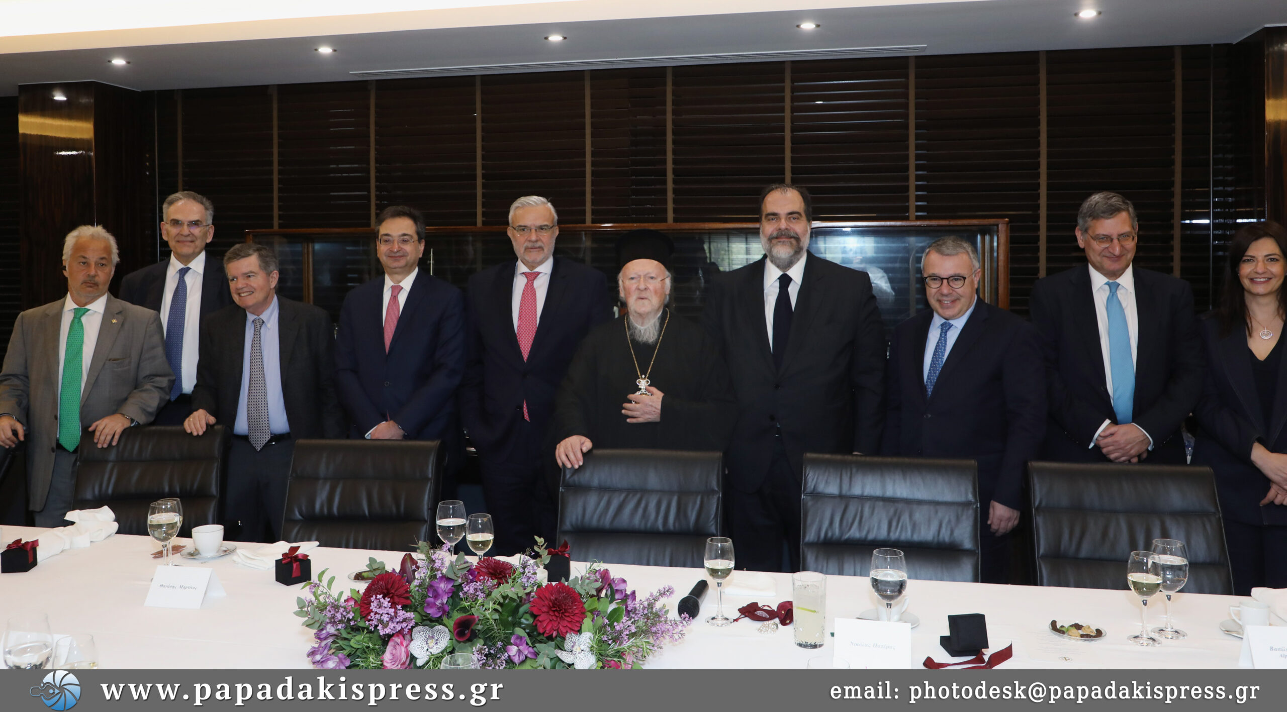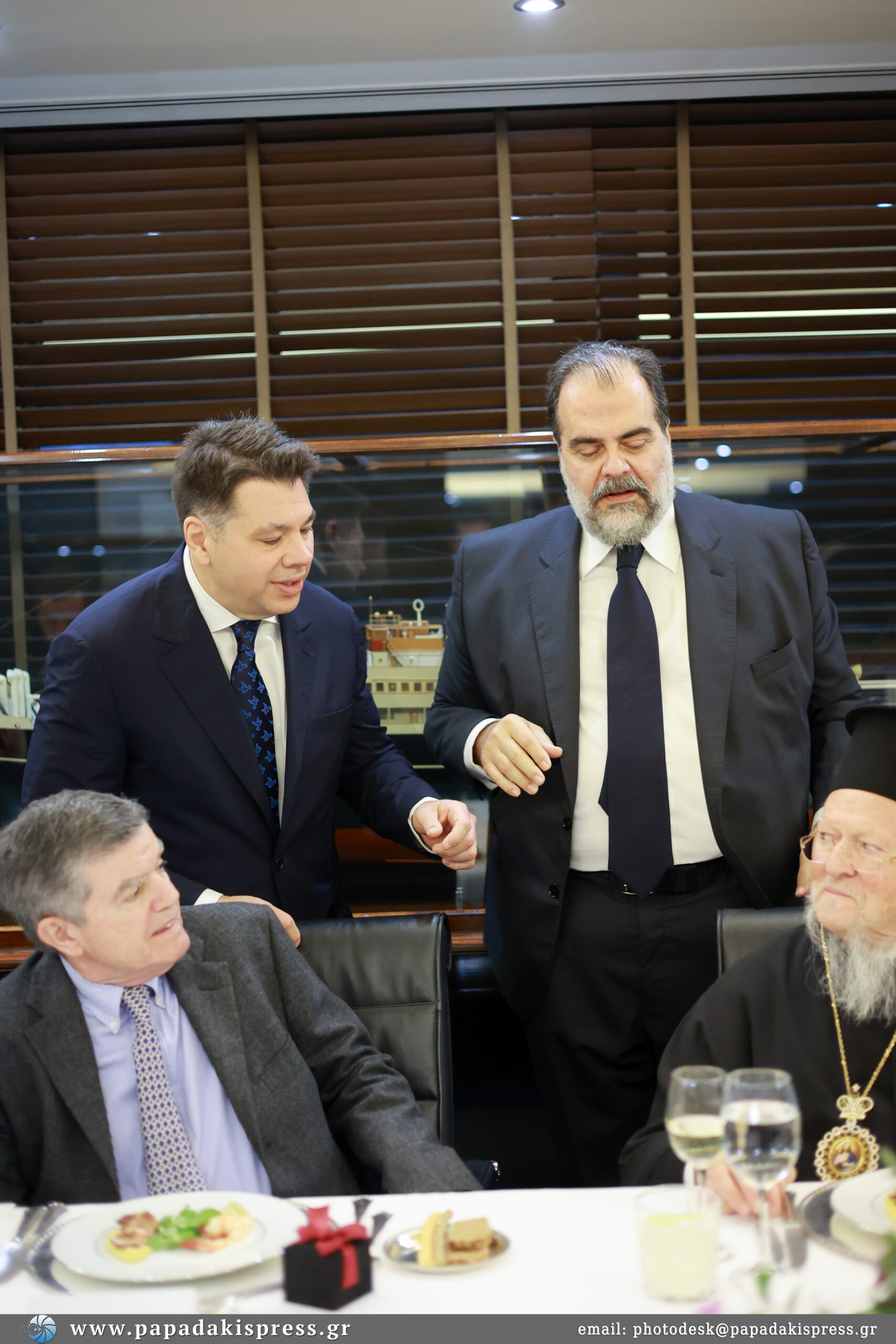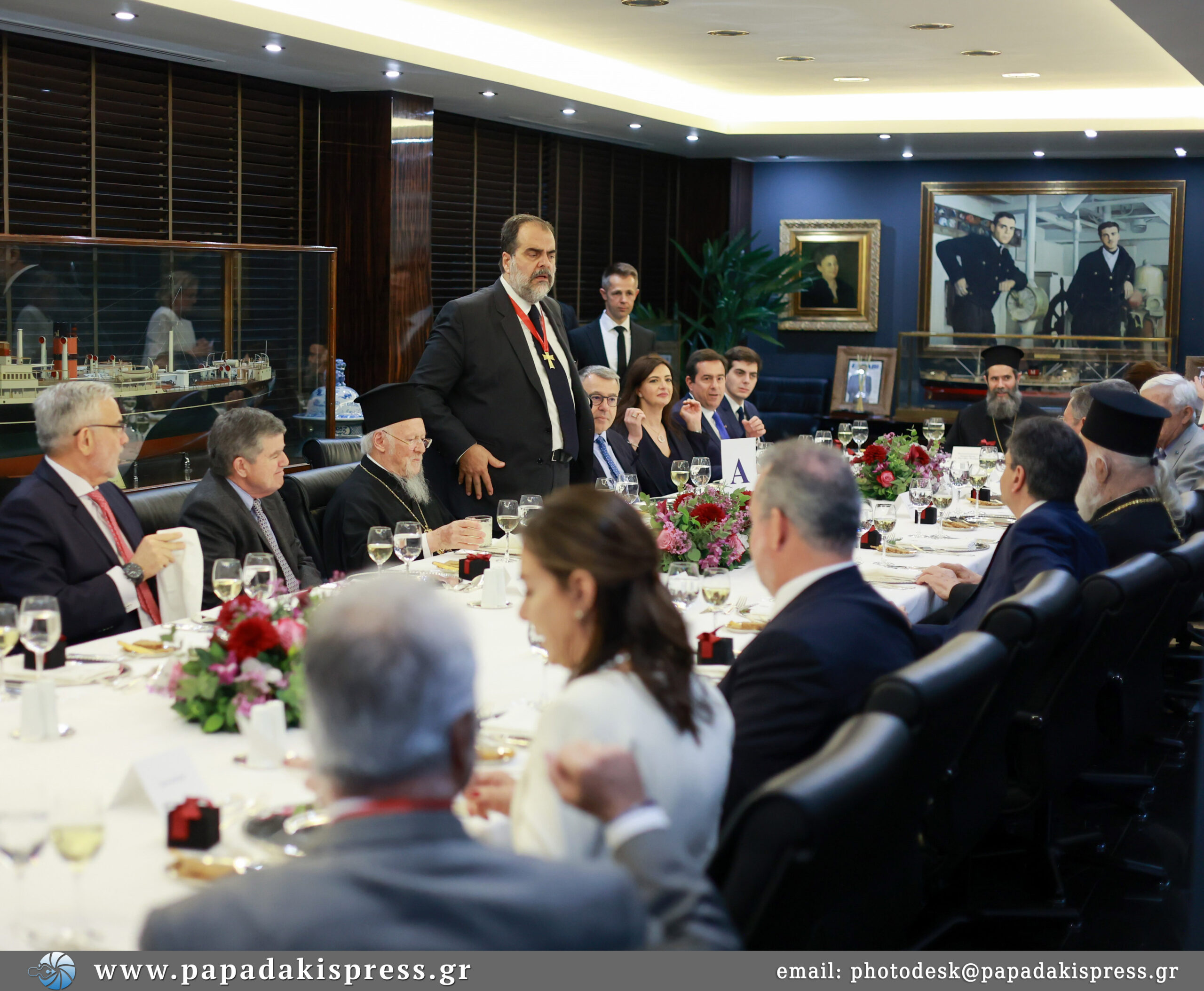 Παρόντες στο γεύμα ήταν και οι εφοπλιστές Θανάσης Μαρτίνος, Πάνος Λασκαρίδης, Αχιλλέας Κωνσταντακόπουλος και Γιώργος Πατέρας καθώς και μέλη της συνοδείας του Πατριάρχη και του Αρχιεπισκόπου.