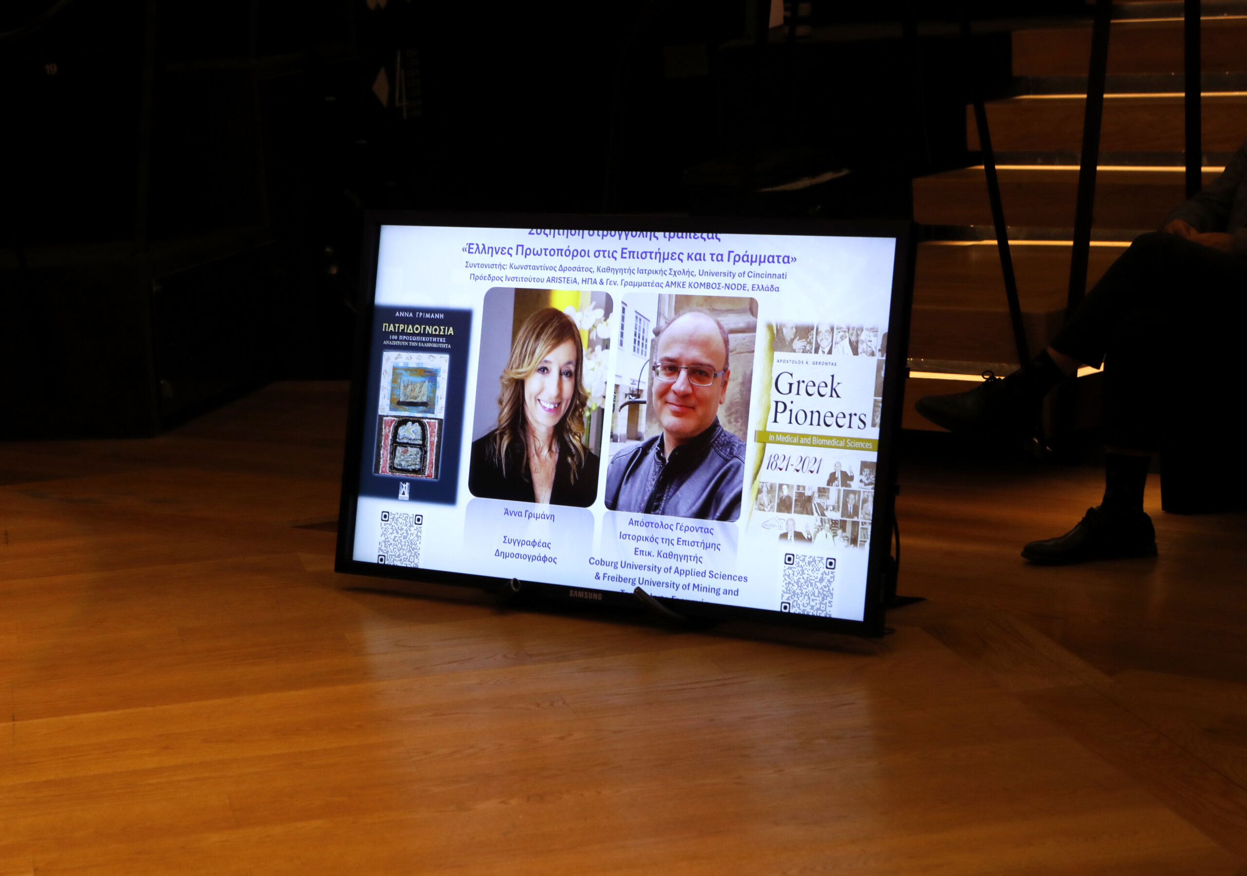 Την εναρκτήρια μέρα του συνεδρίου, πραγματοποιήθηκε μια διαφορετική, θεματικά, συζήτηση στρογγυλής τράπεζας: Ελληνες Πρωτοποροί στις Επιστήμες και τα Γράμματα, βασιζόμενη σε δυο σύγχρονες εκδόσεις που προβάλουν τη δυναμική των Ελλήνων της Επιστήμης & Ερευνας, τόσο ιστορικά όσο και στο παρόν. Ομιλητές οι συγγραφείς των βιβλίων, ο ιστορικός της Επιστήμης Απόστολος Γέροντας που υπογράφει την έκδοση “1821-2021 ‘Ελληνες Πρωτοπόροι στην Ιατρική και τις Βιοιατρικές Επιστήμες και η δημοσιογράφος Άννα Γριμάνη που υπογράφει την έκδοση “Πατριδογνωσία- 100 Προσωπικότητες αναζητούν την Ελληνικότητα” -με έργα του Γιάννη Ψυχοπαίδη και χορηγό το NJV Athens Plaza. Την συζήτηση συντόνισε ο καθηγητής Φαρμακολογίας και Συστημικής Φυσιολογίας στο Univesrity of Cincinnati ΗΠΑ Κωνσταντίνος Δροσάτος.