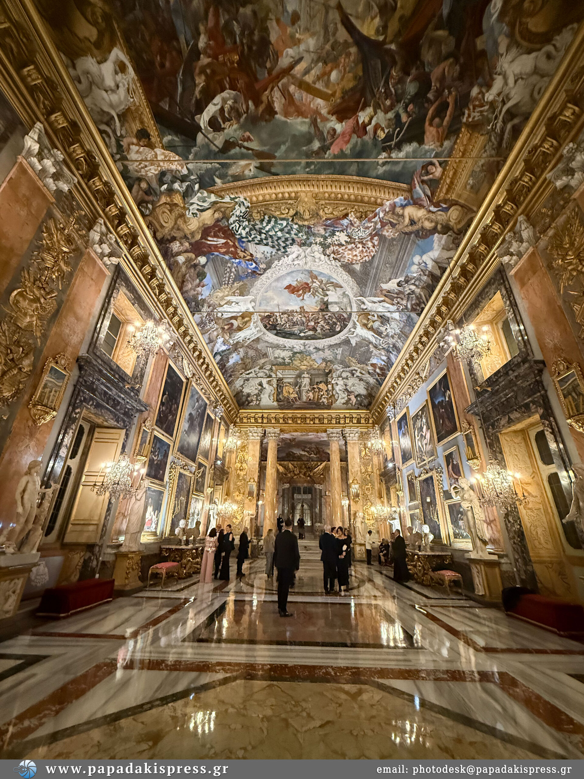 Το Palazzo Colonna, μια από τις αρχαιότερες και πιο εμβληματικές αριστοκρατικές κατοικίες της Ρώμης, φιλοξένησε το επίσημο δείπνο στην ιδιωτική σάλα του Πάπα Μαρτίνου Ε’ στην ιστορική Αίθουσα των Καρδιναλίων.