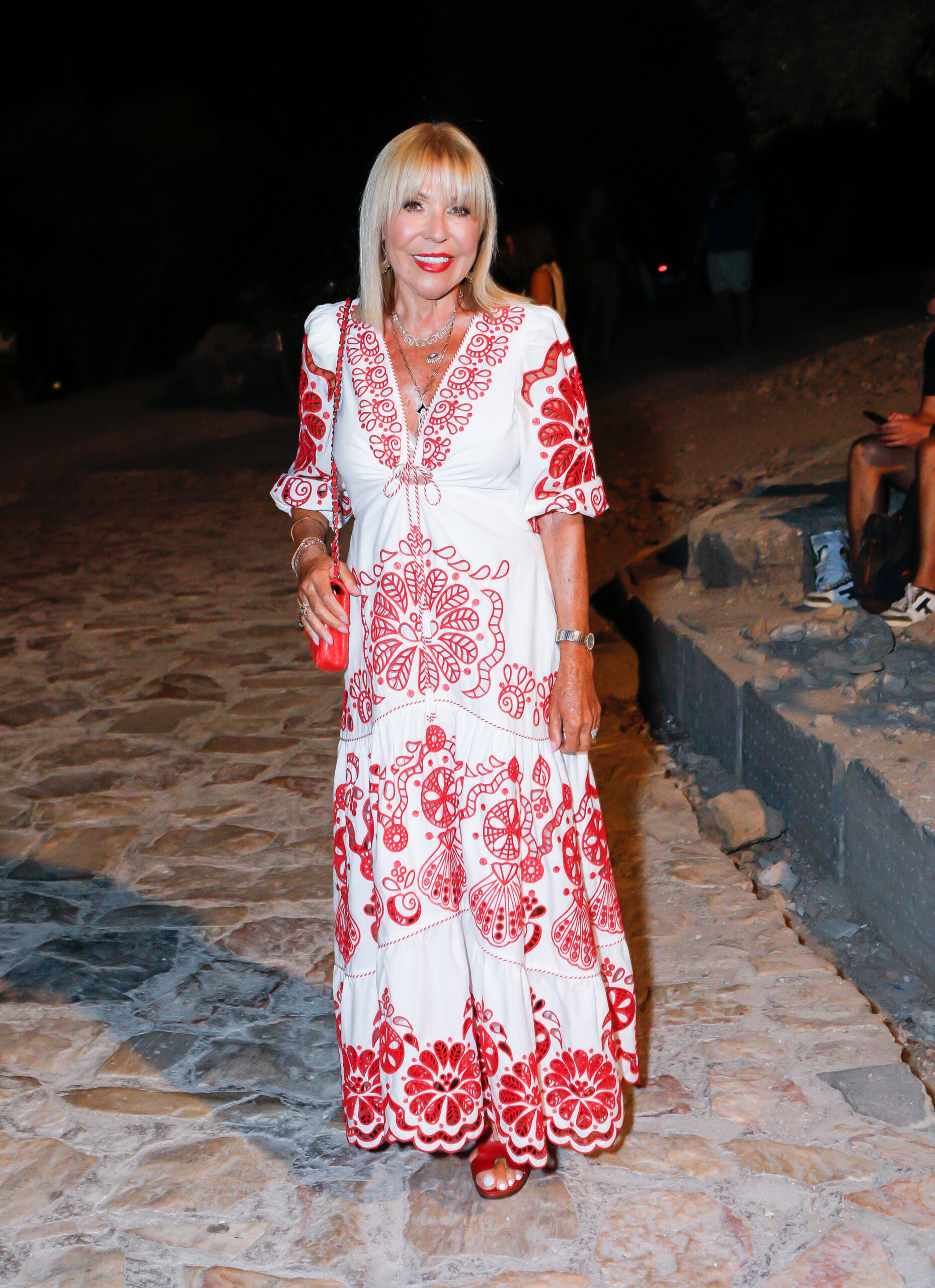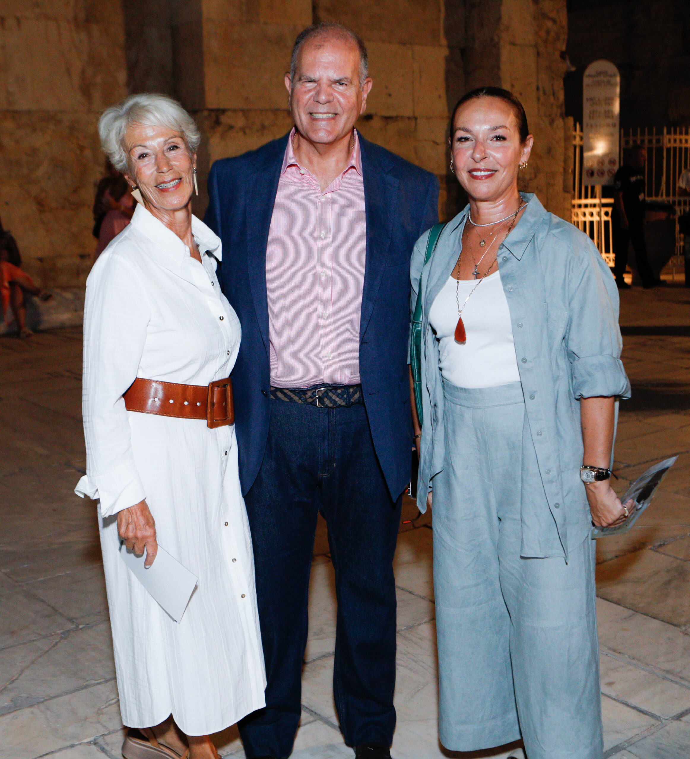 Ιδιαίτερα ευδιάθετη η Άννα Μαρία, κάθισε ανάμεσα στους δύο γιους της και πόζαραν για τους φωτογράφους που βρέθηκαν στο αρχαίο θέατρο.