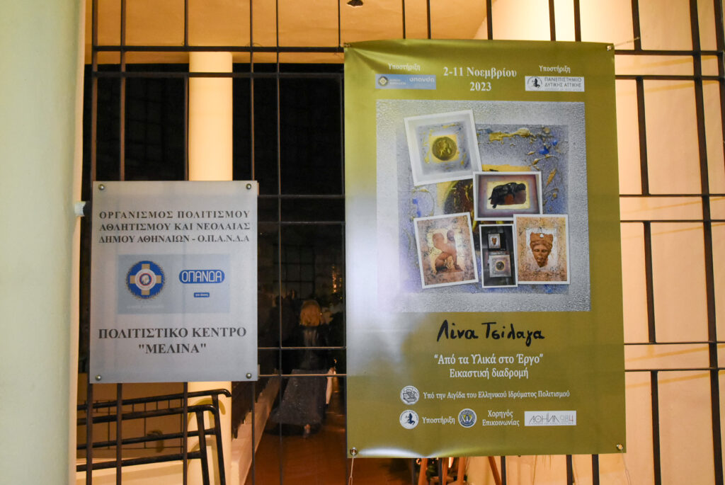 Την Παρασκευή 3/11/2023 στο Πολιτιστικό Κέντρο «Μελίνα» Δήμου Αθηναίων, έγιναν τα εγκαίνια της έκθεσης Ζωγραφικής της κας Λίνας Τσίλαγα, Ομότιμης Καθηγήτριας του Πανεπιστημίου Δυτικής Αττικής. Τίτλος έκθεσης: “Από τα υλικά στο έργο “, Εικαστική διαδρομή