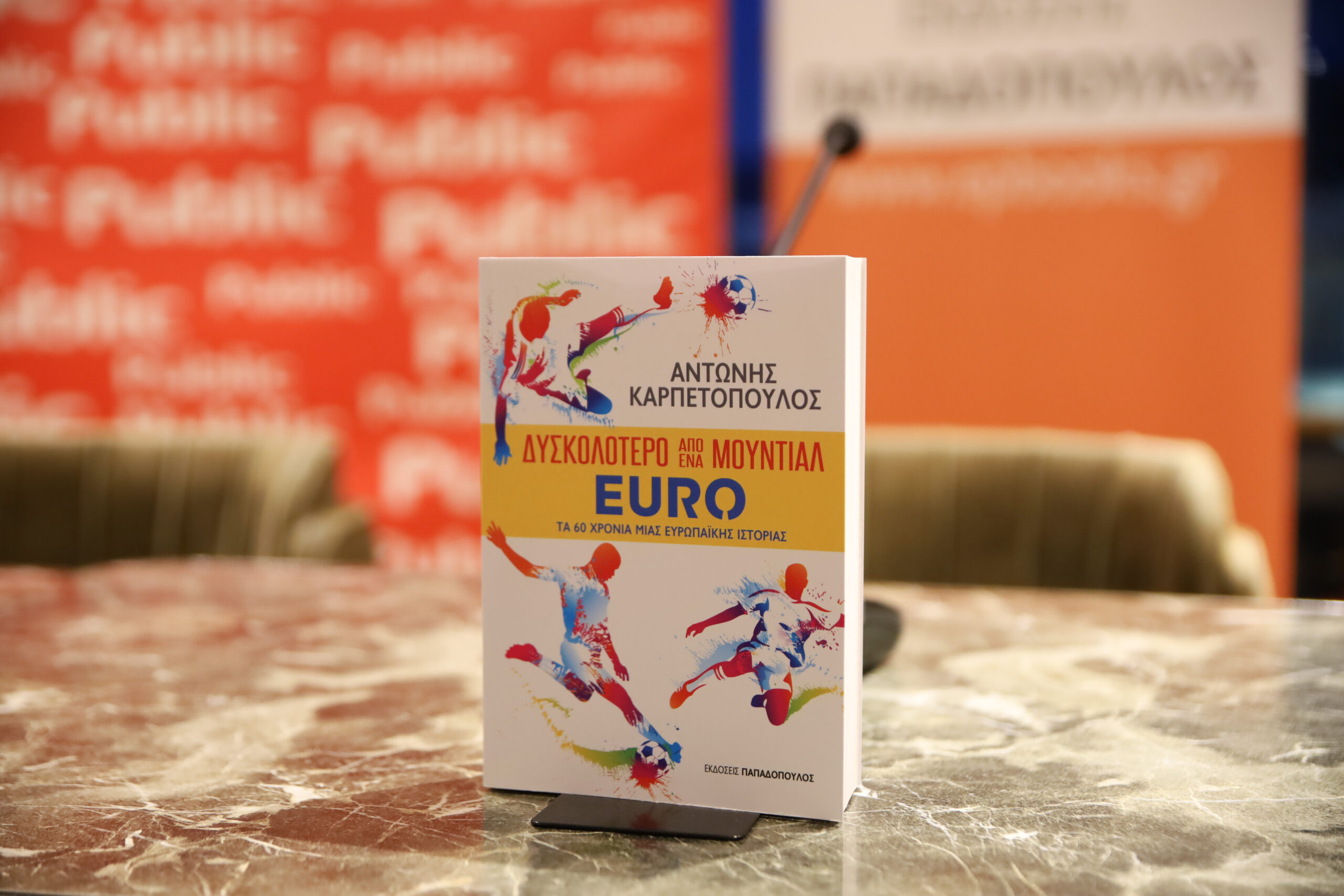 Το βιβλίο έχει τίτλο “Δυσκολότερο από ένα Μουντιάλ-EURO: Τα 60 χρόνια μιας Ευρωπαϊκής ιστορίας”, και η παρουσίαση έγινε Δευτέρα 8 Απριλίου στο cafe του Public Συντάγματος.