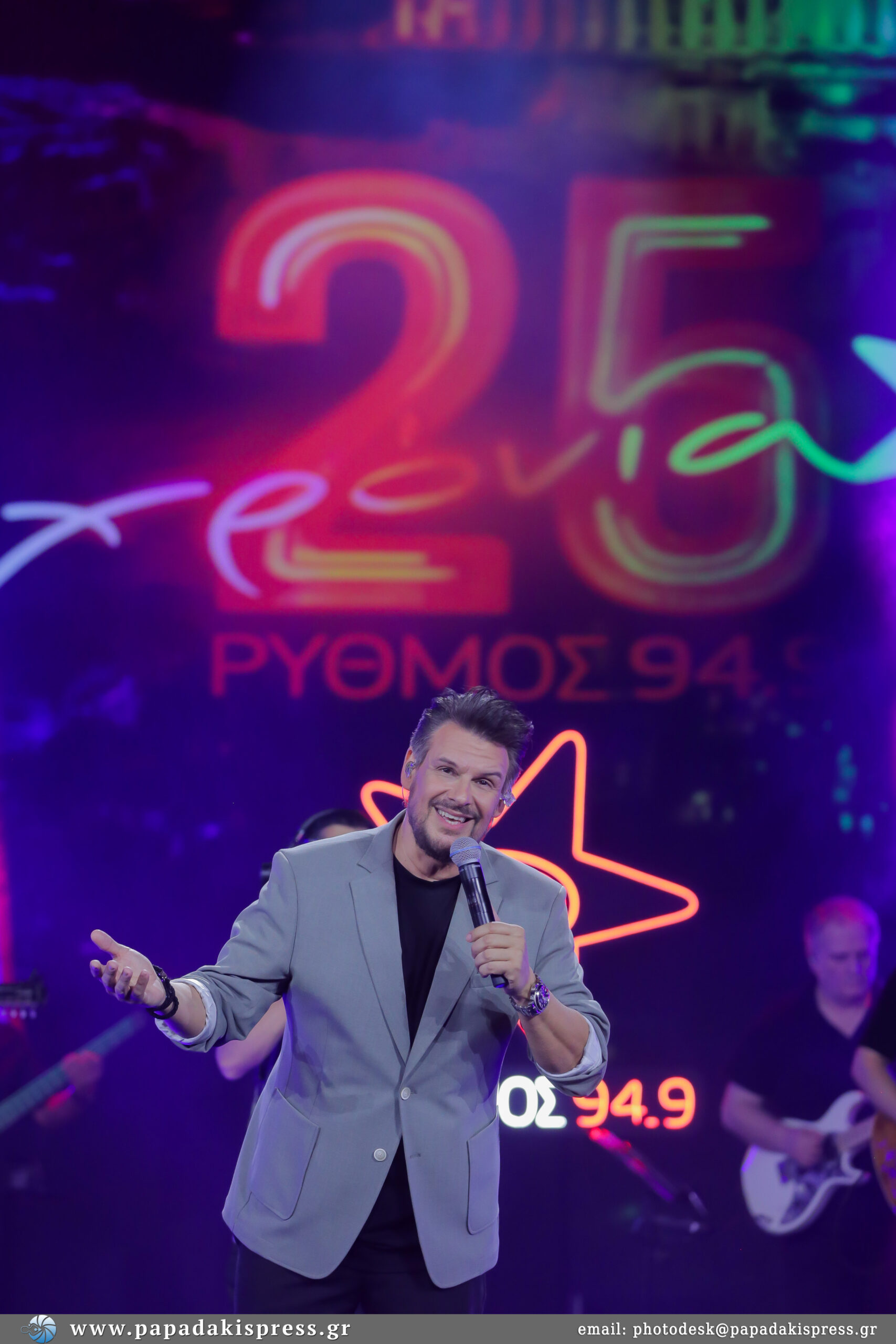 Στη συνέχεια, στη σκηνή εμφανίστηκε ο αγαπημένος διαχρονικός καλλιτέχνης Πάνος Κιάμος ο οποίος ξεσήκωσε κατευθείαν τον κόσμο με μεγάλες του επιτυχίες όπως τα «Γύρνα Πίσω», «Στη Φωτιά Το Χέρι Μου» και «Για Σένα». Στο πλαίσιο της συνέντευξης, οι δυο καλλιτέχνες μίλησαν για τον θαυμασμό που τρέφει ο ένας για τον άλλον, τη μεταξύ τους σχέση ενώ στο αποκορύφωμα της βραδιάς ένωσαν τις φωνές τους σε αγαπημένα τραγούδια που έκαναν ξεκάθαρο ότι τα αισθήματά τους είναι…αμοιβαία. Η χημεία της Ρίας Ελληνίδου και του Πάνου Κιάμου, η ερμηνεία και το πάθος τους για το λαϊκό τραγούδι σε συνδυασμό με την ενέργεια του κοινού, ήταν αυτά που έκαναν το 5ο εορταστικό live των 25 χρόνων του ΡΥΘΜΟΥ 94.9 αξέχαστο!