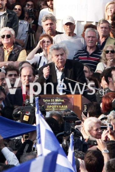Ο Μίκης Θεοδωράκης έδωσε το αγωνιστικό του παρών στην “αφύπνιση της κοινωνίας” που οργάνωσε η Πρυτανεία του Πανεπιστημίου Αθηνών