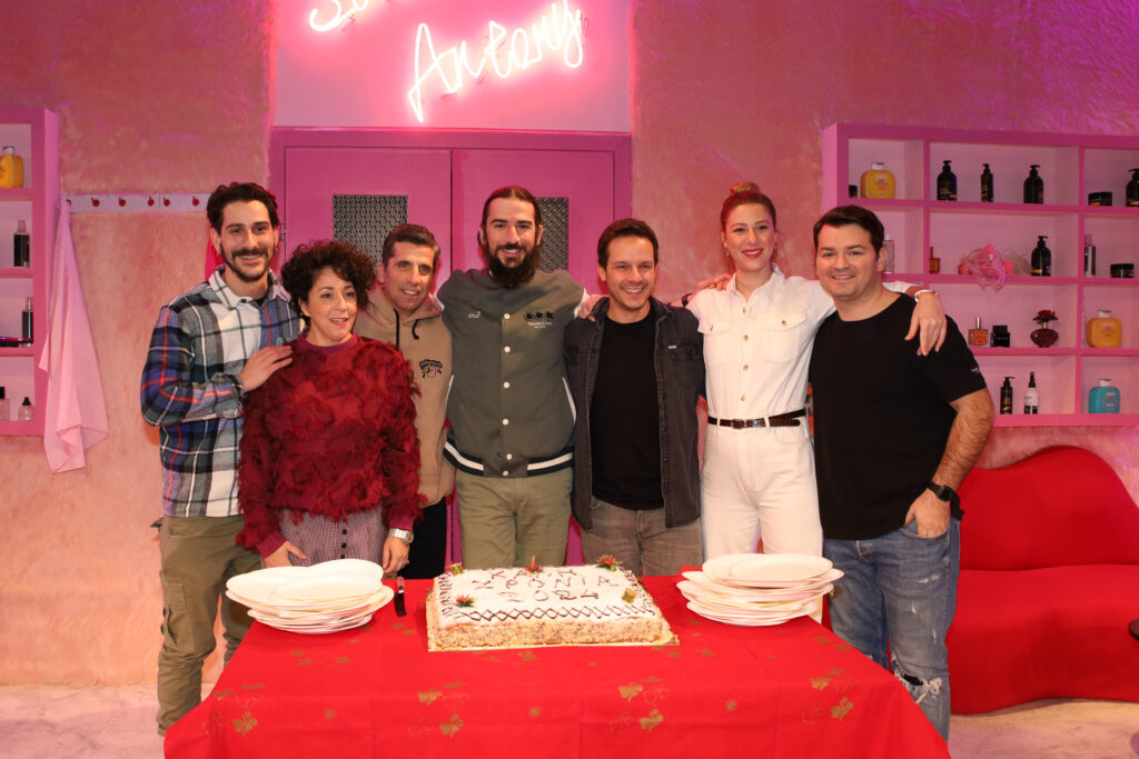Οι πρωταγωνιστές και συντελεστές της παράστασης «Σεσουάρ για Δολοφόνους» στο θέατρο Λαμπέτη μαζεύτηκαν το απόγευμα της Τετάρτης 31 Ιανουαρίου για την κοπή της πρωτοχρονιάτικης πίτας.