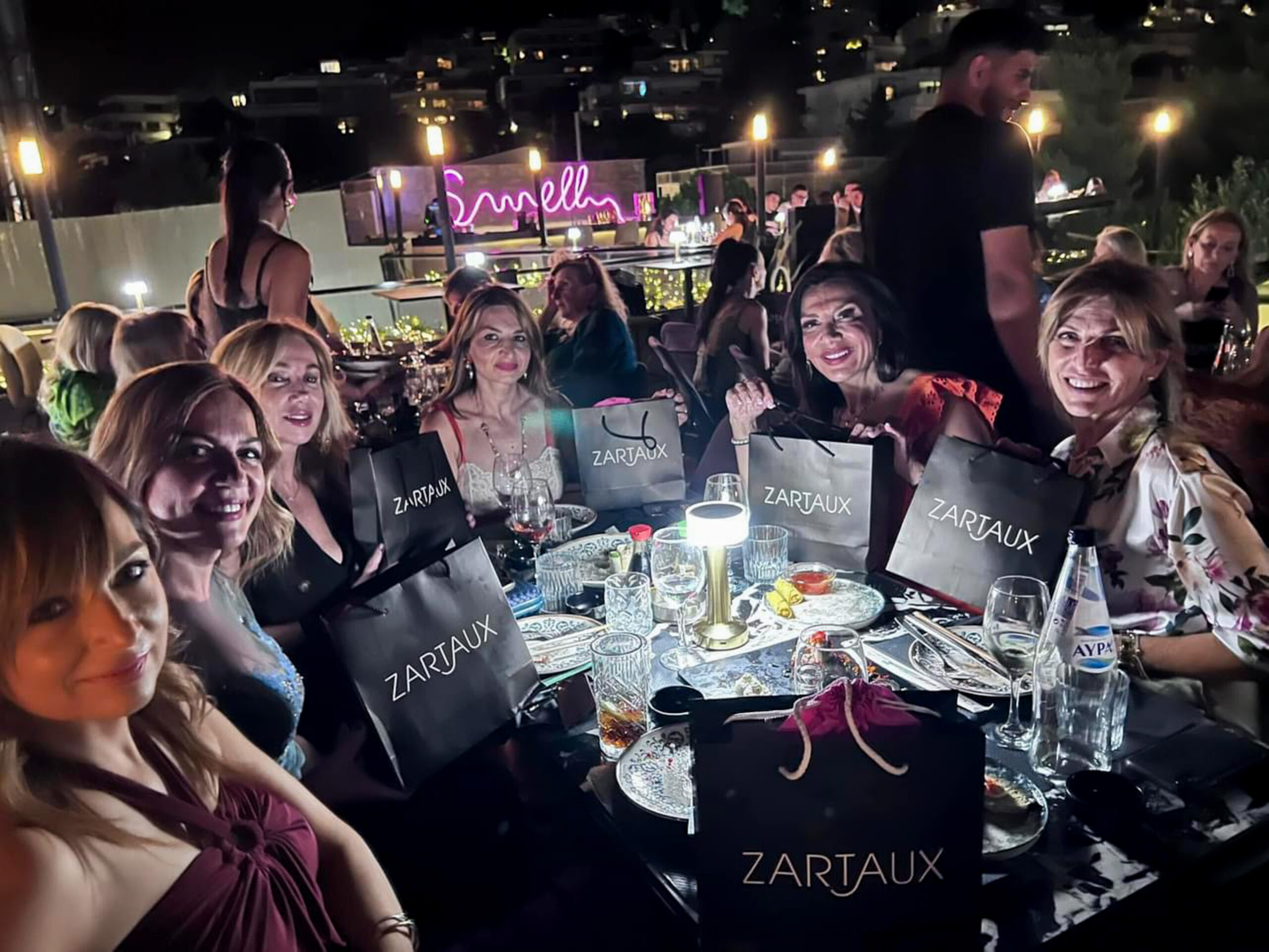 Η εξαιρετική βραδιά έκλεισε με τα δώρα που μοίρασε η εορτάζουσα στις φίλες της: Ένα φούξια πουγκί με εξαιρετικά προϊόντα περιποίησης δέρματος της κορυφαίας ελβετικής εταιρείας “ZARTAUX” (Gold cream, zartaux skinnovelties, zartaux tonic lotion dry & sensitive skin, eye serum against dark shadows, serum vitale caviar concentrée) και ένα καλόγουστο βραχιολάκι από την “AILIN BOUTIQUE”!
