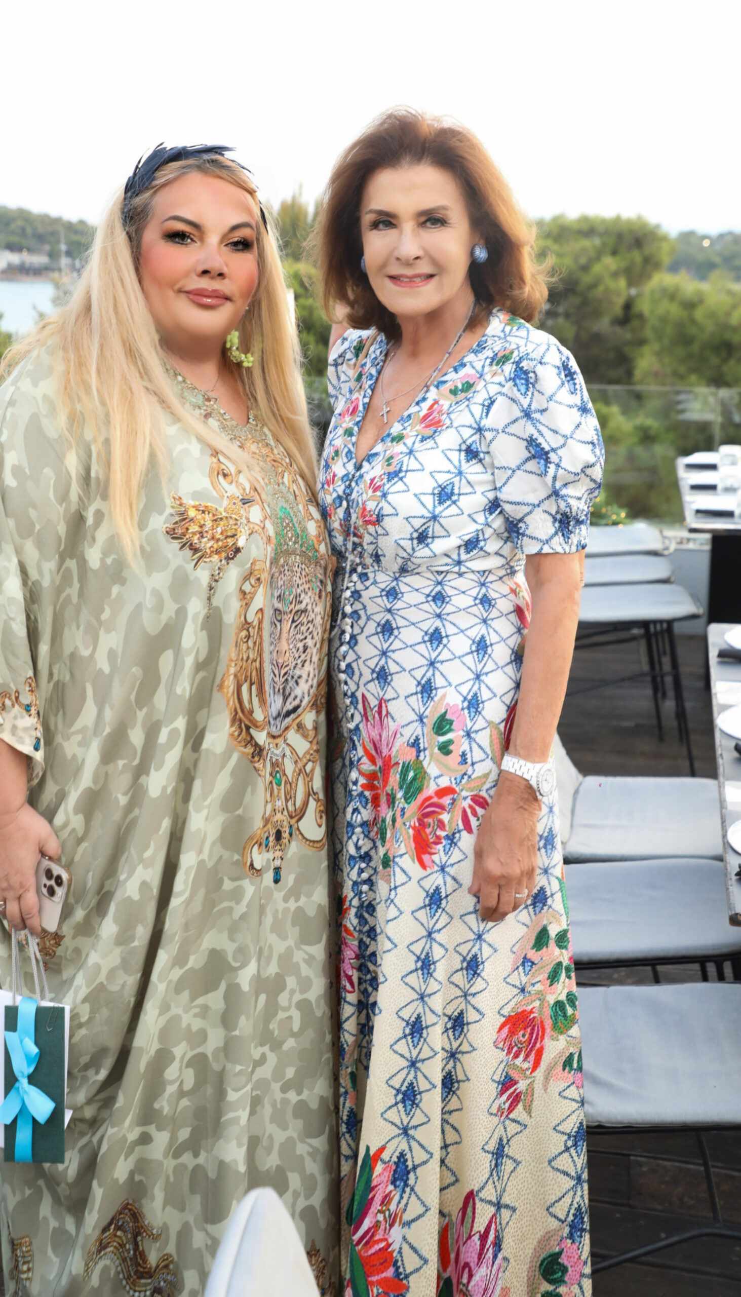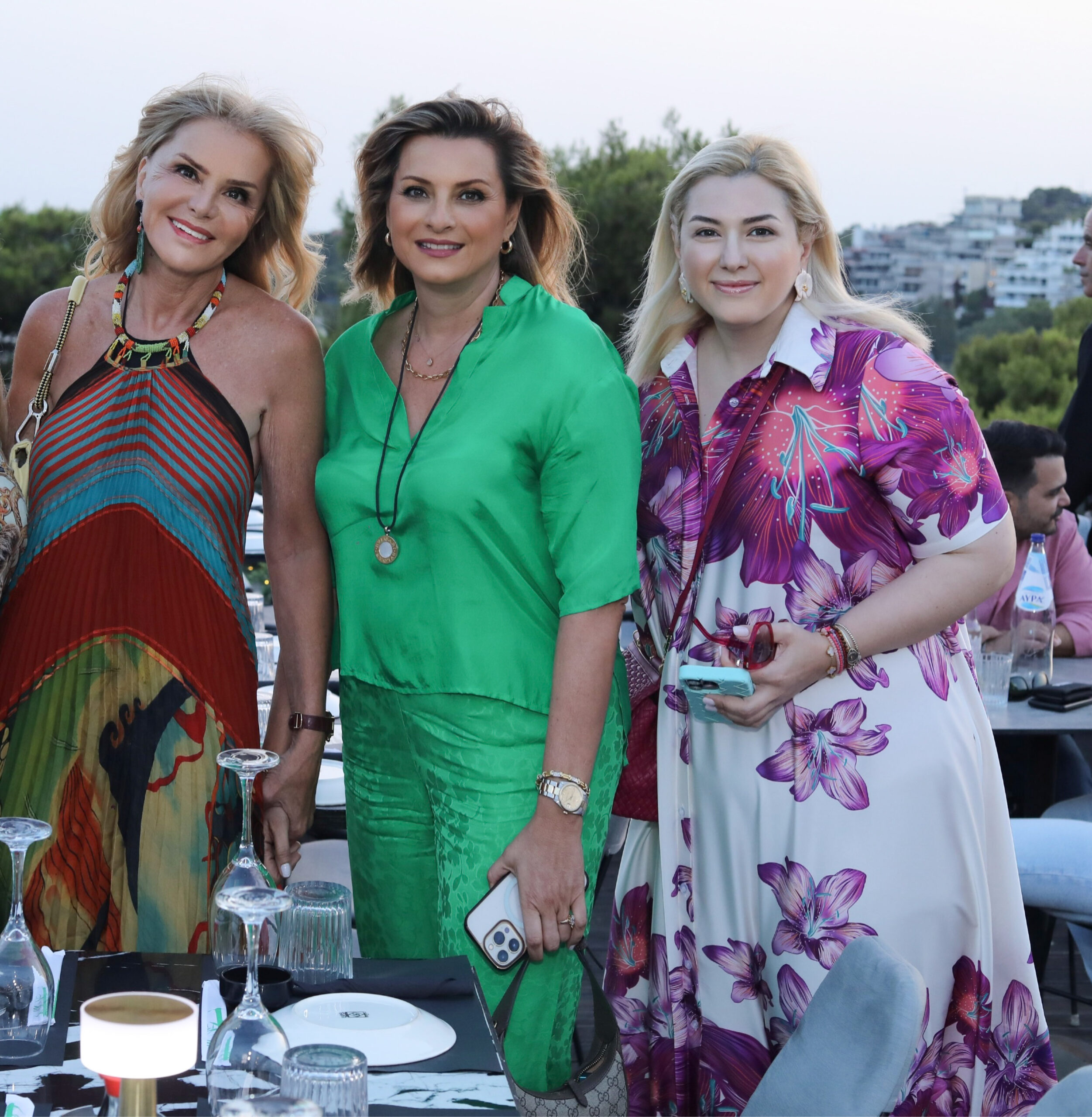 Η οικοδέσποινα τις περίμενε με ένα πλατύ χαμόγελο, φορώντας ένα υπέροχο καφτάνι από την αγαπημένη της “AILIN BOUTIQUE” και με την βοήθεια του ιδιοκτήτη του “SWELL” Γιώργου Τοσουνίδη, φρόντιζε να μην λείπει τίποτα από κανένα τραπέζι.