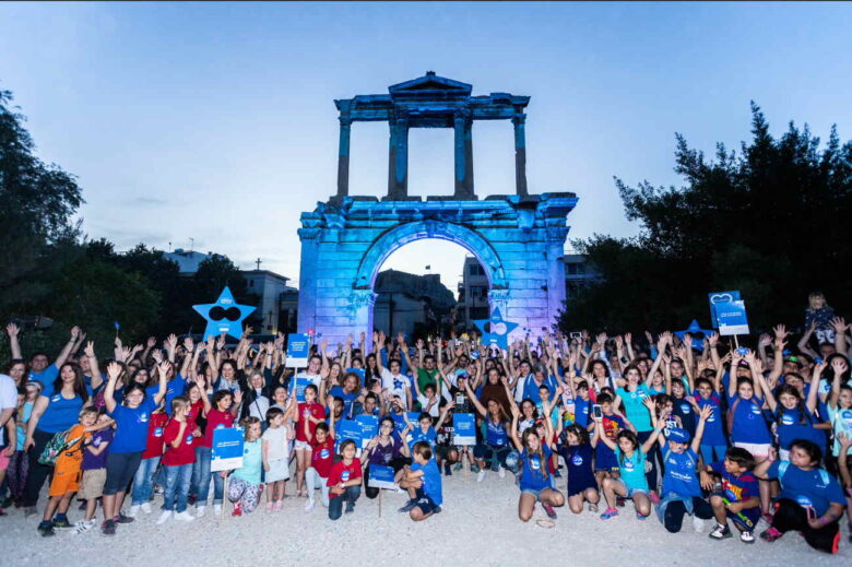 Ιδιαίτερα συγκινητική ήταν η συμμετοχή των παιδιών της Χορωδίας του Κολλεγίου Αθηνών, που με τις μελωδικές φωνούλες μετέφεραν με τη σειρά τους ένα ακόμη μήνυμα ελπίδας λίγο πριν η πορεία καταλήξει στην Πύλη Αδριανού που φωτίστηκε για μια ακόμη χρονιά συμβολικά με μπλε χρώμα.