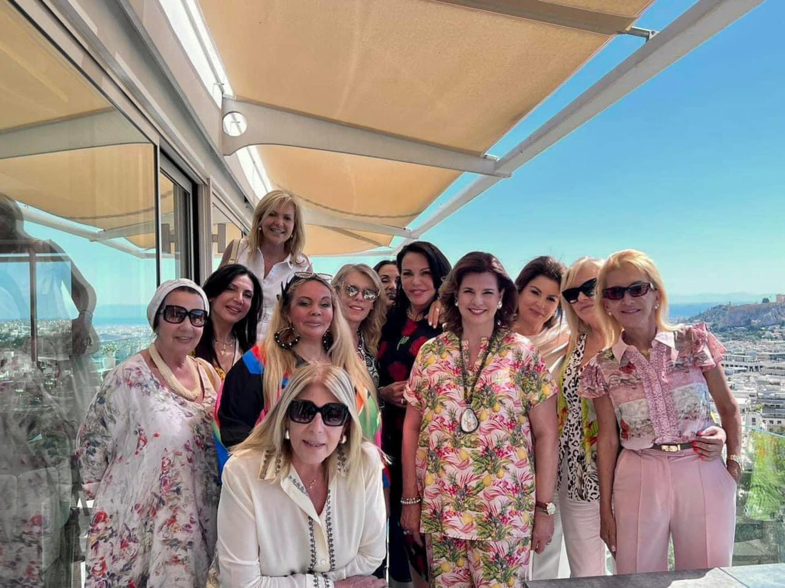 Αυτό ήταν το πρώτο κάλεσμα που έκανε με αφορμή τα γενέθλια της, ενώ ακολουθούν και άλλα με περιορισμένο αριθμό καλεσμένων. Με το μάτι να προσκυνάει τον Ιερό βράχο της Ακρόπολης από τη μια και το εκκλησάκι του Αη Γιώργη στο Λυκαβηττό από την άλλη, ή να βυθίζεται νωχελικά στην καταγάλανη θάλασσα του Αργοσαρωνικού, οι εκλεκτές καλεσμένες της οικοδέσποινας, Κατερίνα Παναγοπούλου, Αγάπη Πολίτη, Μαρίλυ Γλύπτη Κανελλάκη, Ειρήνη Νταϊφά, Πέγκυ Φιλίππου, Λίτσα Λάβδα, Άντζελα Βαγιωνή, Μαρίζα Φασιανού, Μαρίνα Γιαβρόγλου, Τζένη Γλύπτη, Ζανέτ Καλαντζάκου, Ιωάννα Μειμέτη, Λουκία Παπαθανάση, Θεοδώρα Βρούτση, Φώφη Καμποσιόρα, Βασιλική Τσίντζου, Στέλλα Βουλγαράκη, Αλίκη Χατζοπούλου, Ιλεάννα Σωτηροπούλου, Μαρία Ορφανουδάκη, Ντάνα Στασινού, απόλαυσαν το art de la table δικής της εμπνεύσεως, αλλά διά χειρός της ευρηματικής και δραστήριας ιδιοκτήτριας του St.George Lycabettus, Ειρήνης Βασιλοπούλου, καθώς και το πρωτότυπο και εύγευστο menu που είχε ετοιμάσει ο executive chef του αγαπημένου μου εστιατορίου!
