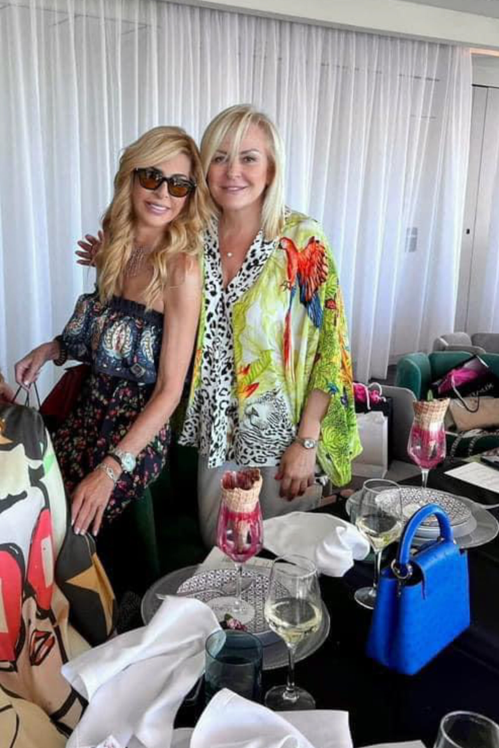 Το καλωσόρισμα στις καλεσμένες έγινε με το σπάνιο βιολογικό κρασί LAPO, το ακριβότερο ροζέ κρασί στον κόσμο με 24K χρυσού στη φιάλη, που παράγεται μόνο σε 500-700 φιάλες το χρόνο από την Έλενα Μπαβελή και τους αμπελώνες Έλενα Μπαβελή, και το οποίο αποτελεί μέρος του concept •Wine •Art •Diamonds, ενώ το menu συνοδεύτηκε από το εκλεκτό κρασί του «St.George Lycabettus»! Στο τέλος η οικοδέσποινα μοίρασε δώρα στις καλεσμένες της: