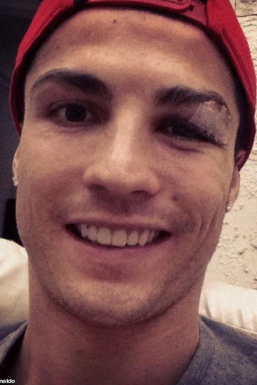 Ο λόγος για τον Κριστιάνο Ρονάλντο, ο οποίος πόσταρε μια φωτογραφία στο facebook με ράμματα στο αριστερό του μάτι, ύστερα από σύγκρουση που είχε στον τελευταίο αγώνα με τη Ρεάλ Μαδρίτης.