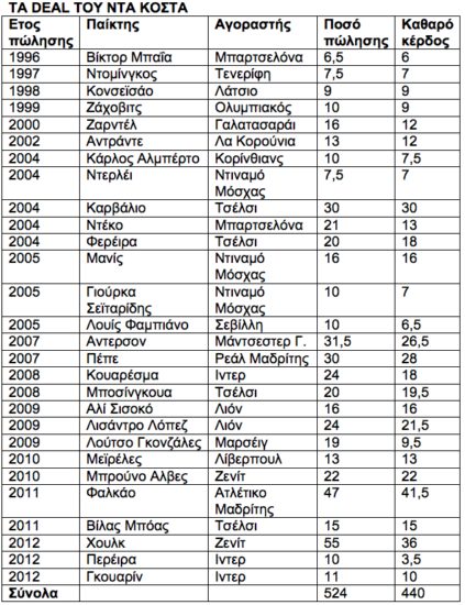 Και επειδή τα πολλά λόγια είναι φτώχεια, παραθέτουμε συνοπτικά τα σημαντικότερα ντιλ του «χρυσοδάχτυλου» παράγοντα που είναι μακράν του δεύτερου ο κορυφαίος στο παγκόσμιο ποδόσφαιρο την τελευταία 30ετία.