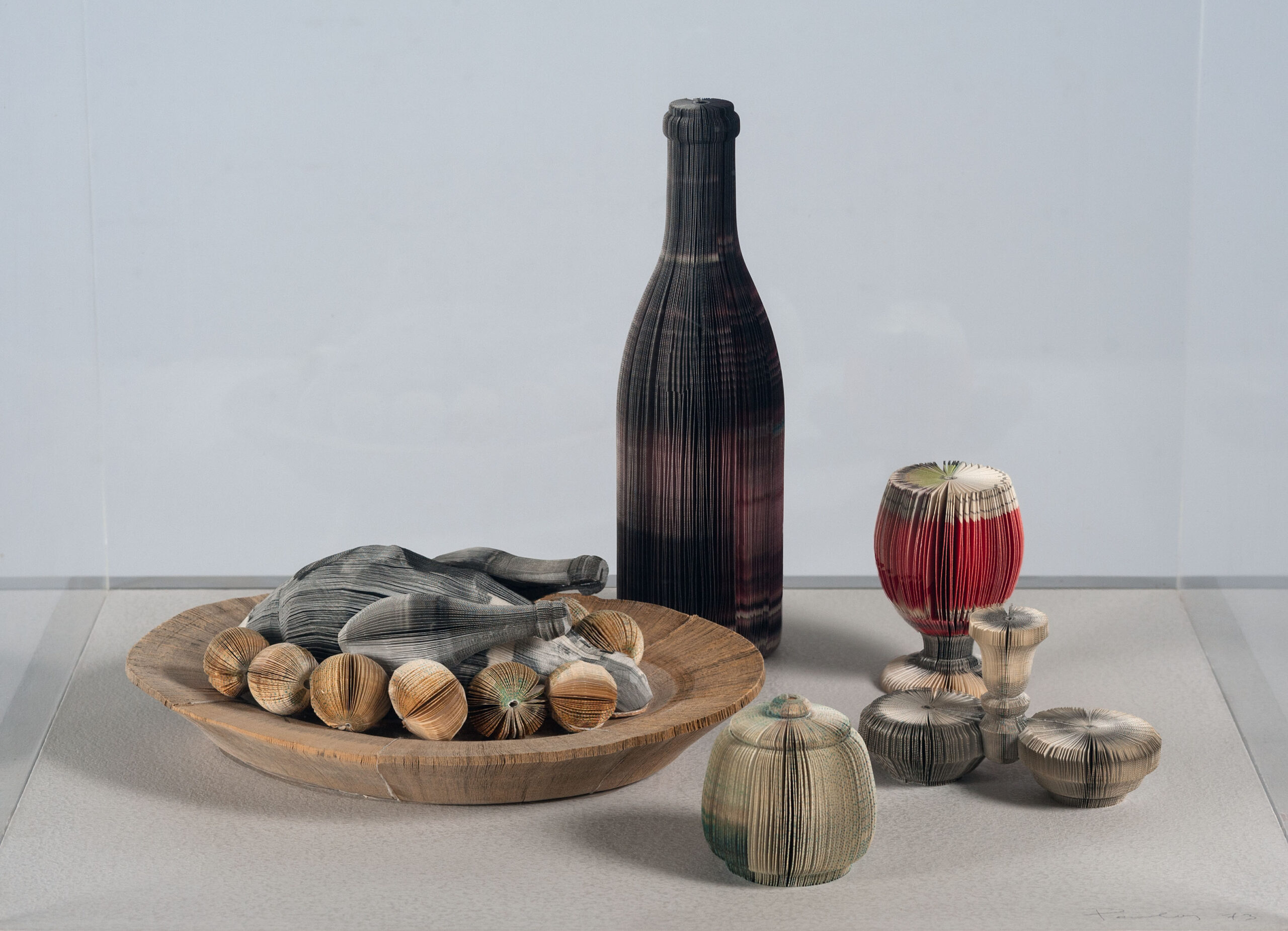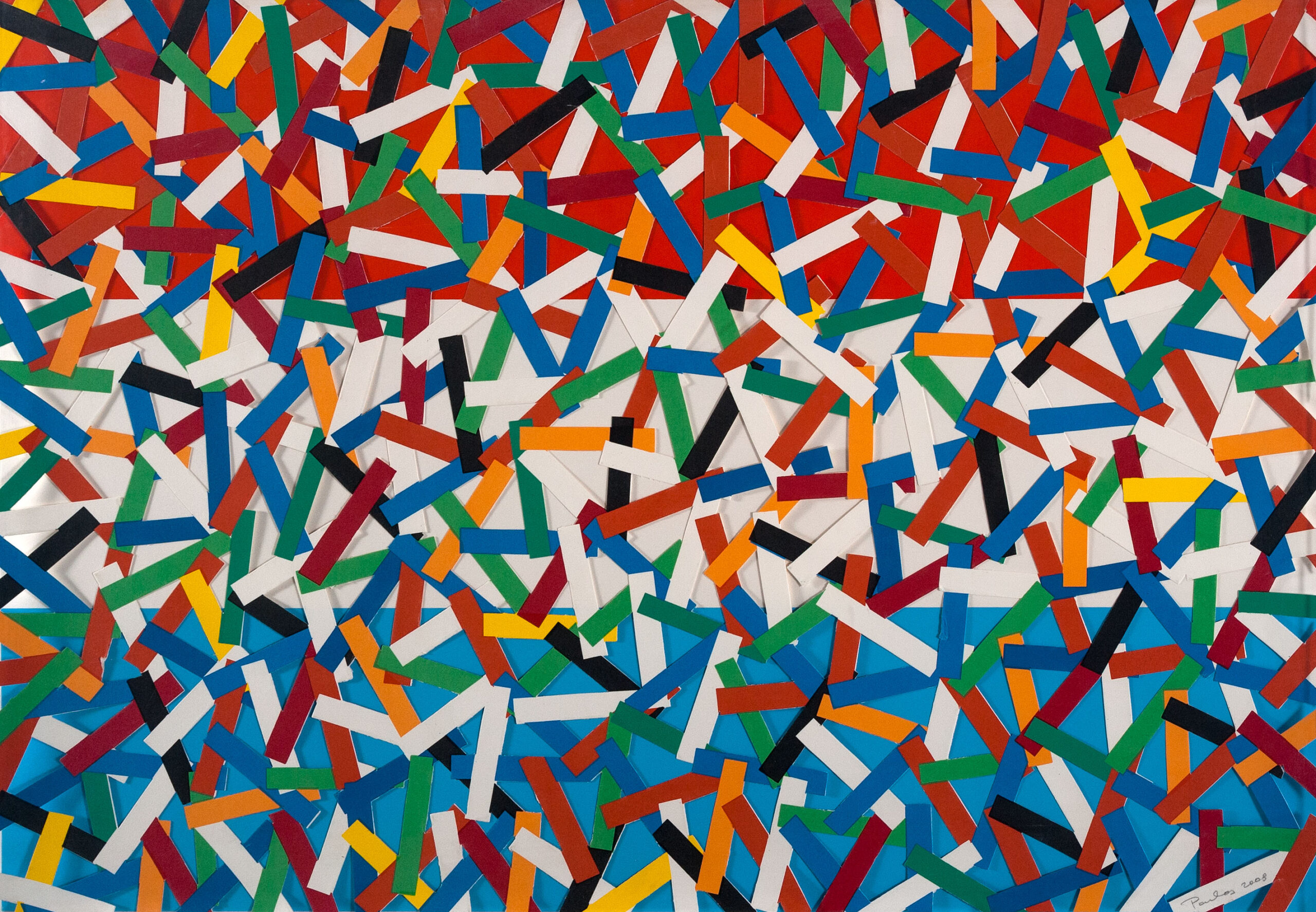 Οι επισκέπτες της έκθεσης θα έχουν την ευκαιρία να θαυμάσουν έργα που δημιουργούσε με τη δική του τεχνική σήμα κατατεθέν, συναρμολογώντας κομμένες, πολύχρωμες λωρίδες από αφίσες, αλλά και μεταλλικό σύρμα. Χαρακτηριστικές συνθέσεις με αντικείμενα καθημερινής χρήσης, ποτήρια, μπουκάλια τιρμπουσόν, αλλά και σακάκια, πούρα, δέντρα, κασπό με λουλούδια, νεκρές φύσεις, τοπία, θάλασσες και αγροί, όπου η εντύπωση και το αποτέλεσμα εξαρτώνται από το παιχνίδισμα των χρωμάτων και τον τρόπο συγκόλλησης του υλικού.